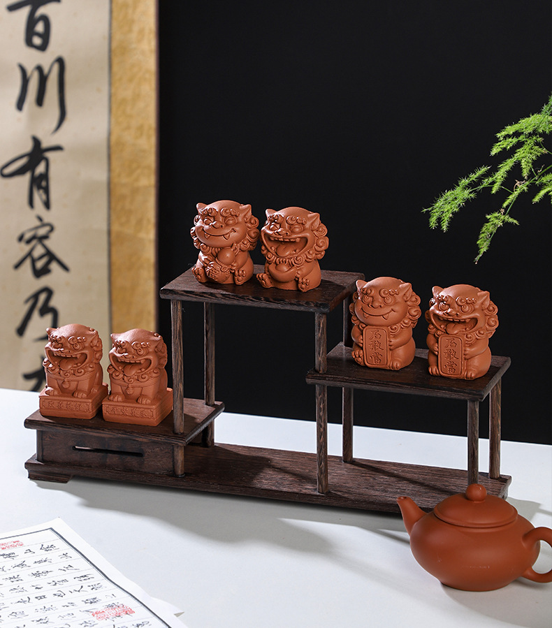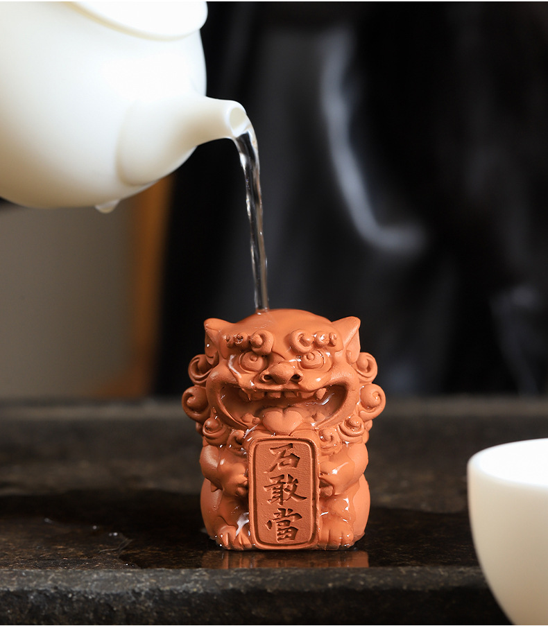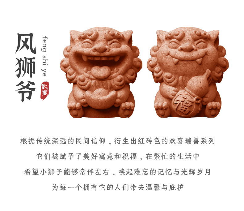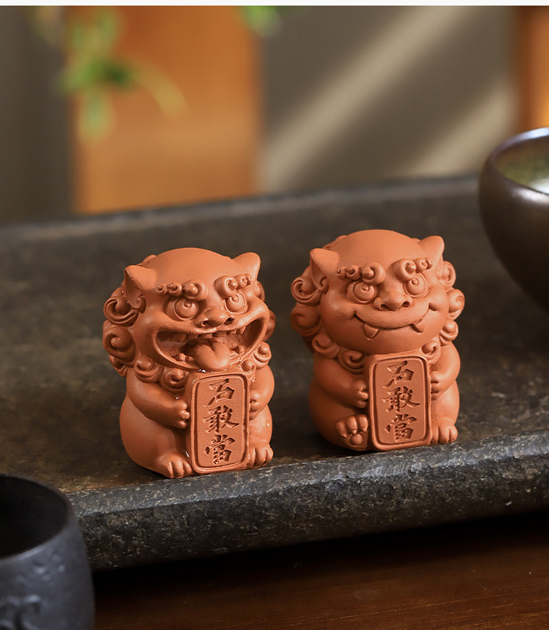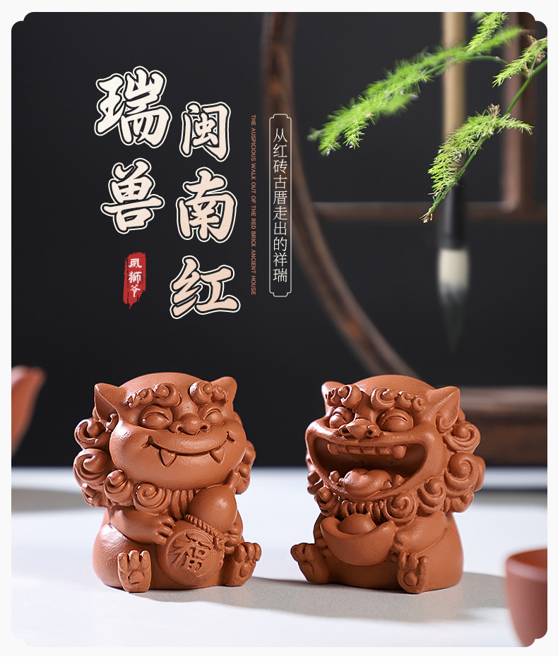 Guochao 바람 사자 마스터 데스크탑 장식 돌 강당 중국 장식품 창조적 인 붉은 도자기 차 애완 동물 사자 분재 물고기 탱크 풍경