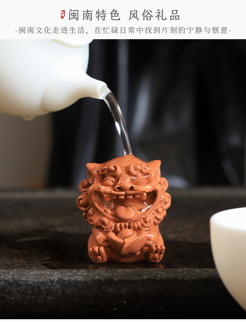 Guochao 바람 사자 마스터 데스크탑 장식 돌 강당 중국 장식품 창조적 인 붉은 도자기 차 애완 동물 사자 분재 물고기 탱크 풍경스토어 가기