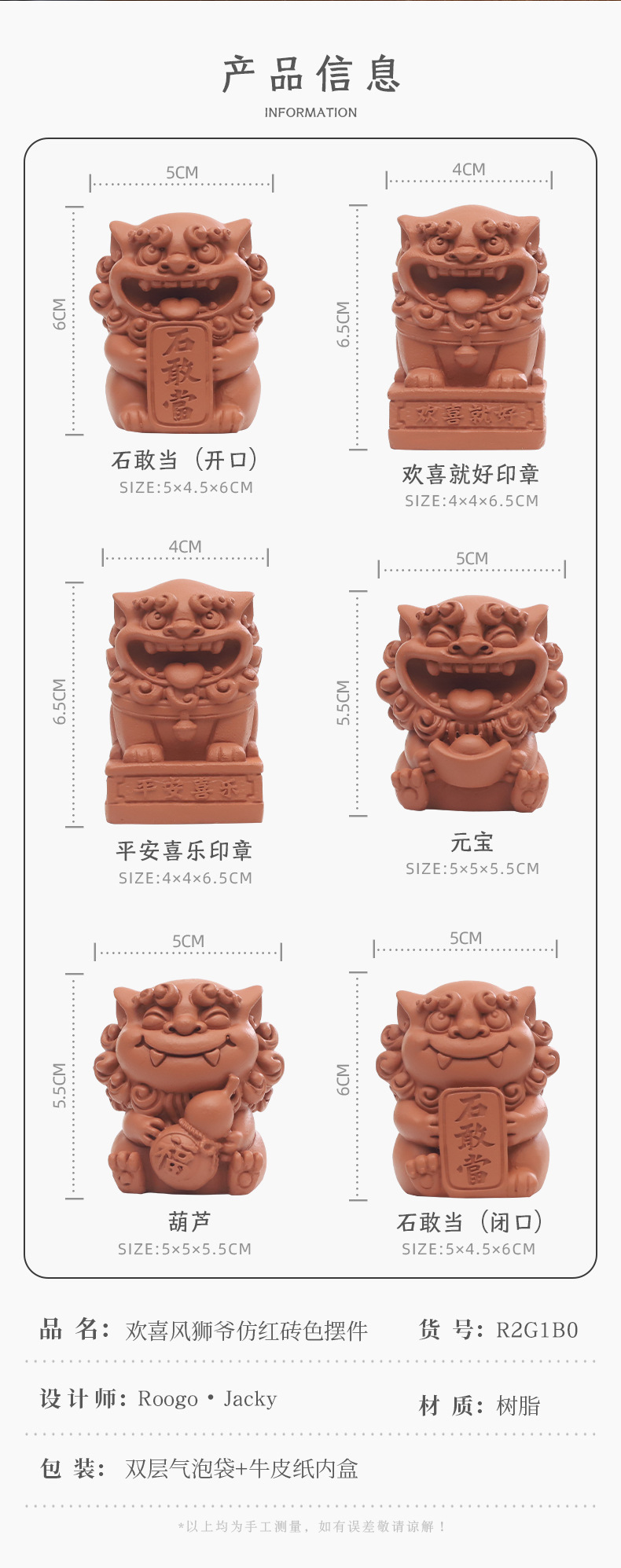 • 행복한 바람 사자 모조 붉은 벽돌 장식 - Shi Gandang (닫힌 입)