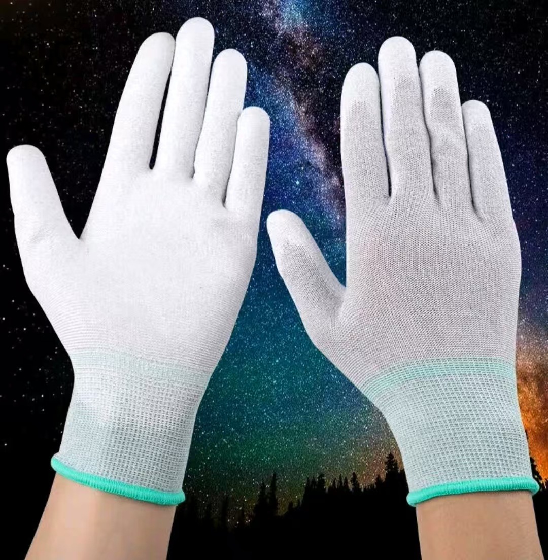 담그는 노동 장갑 흰색 PU 손가락 코팅 손바닥 미끄럼 방지 정전기 방지 전자 공장 조립 작업 먼지가없는 장갑