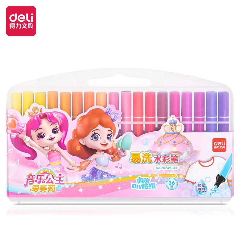 델리 70739 수채화 펜 음악 공주 만화 수채화 펜 간편한 세척 수채화 펜 낙서 유치원 그림 브러쉬스토어 가기