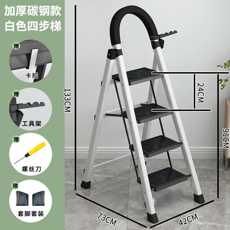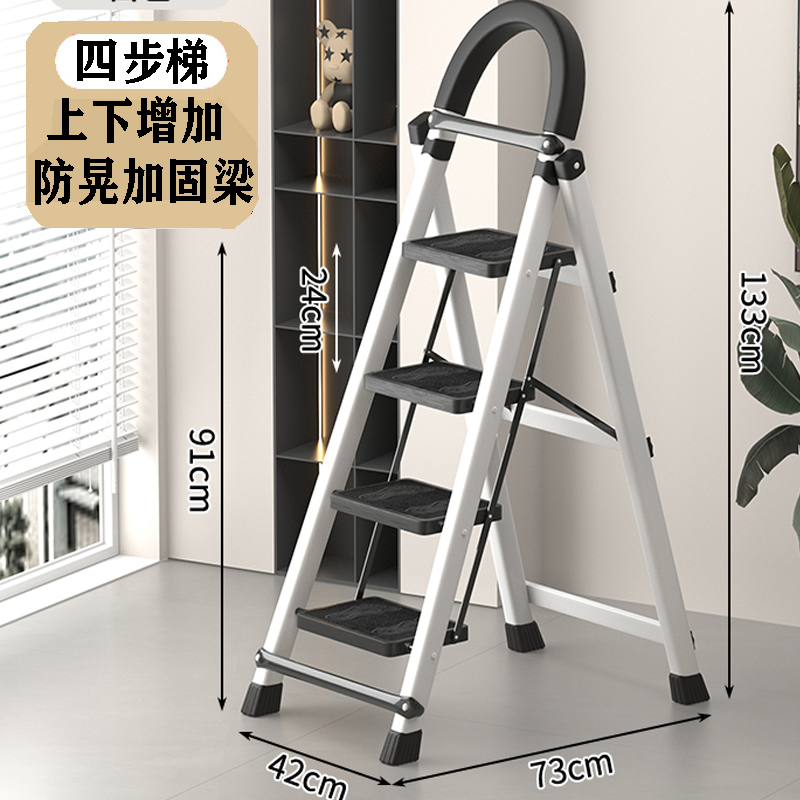 • [82% 선택] 두꺼워진 흰색 4단 사다리 [강화 리브 버클 페달 + 풀 페달 이중 강화 흔들림 방지 빔] - 단면 사다리