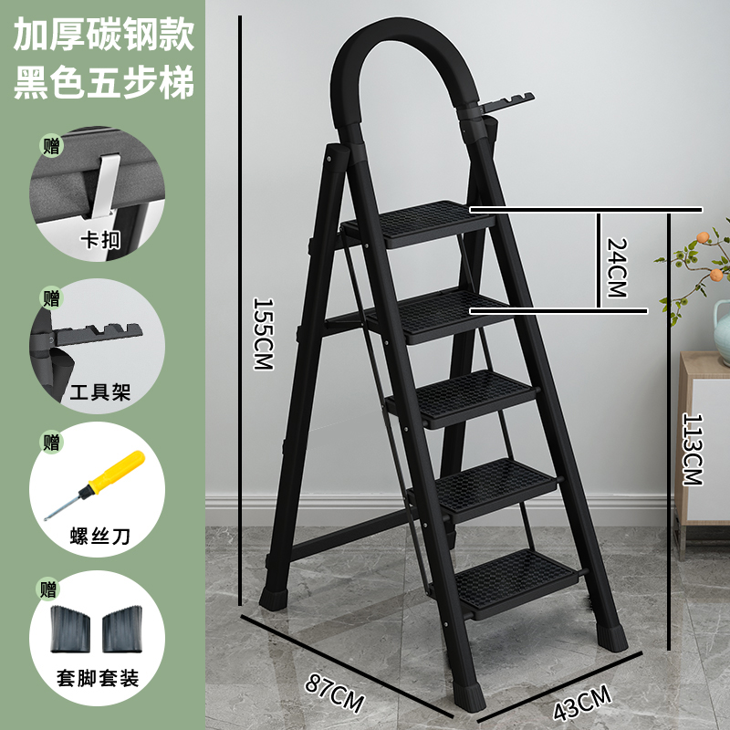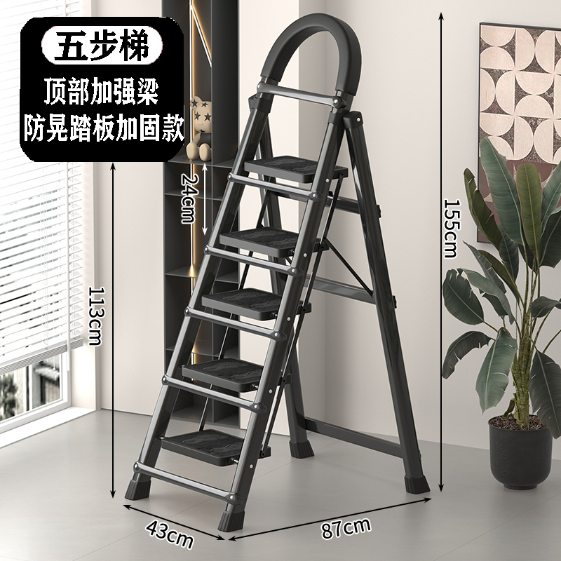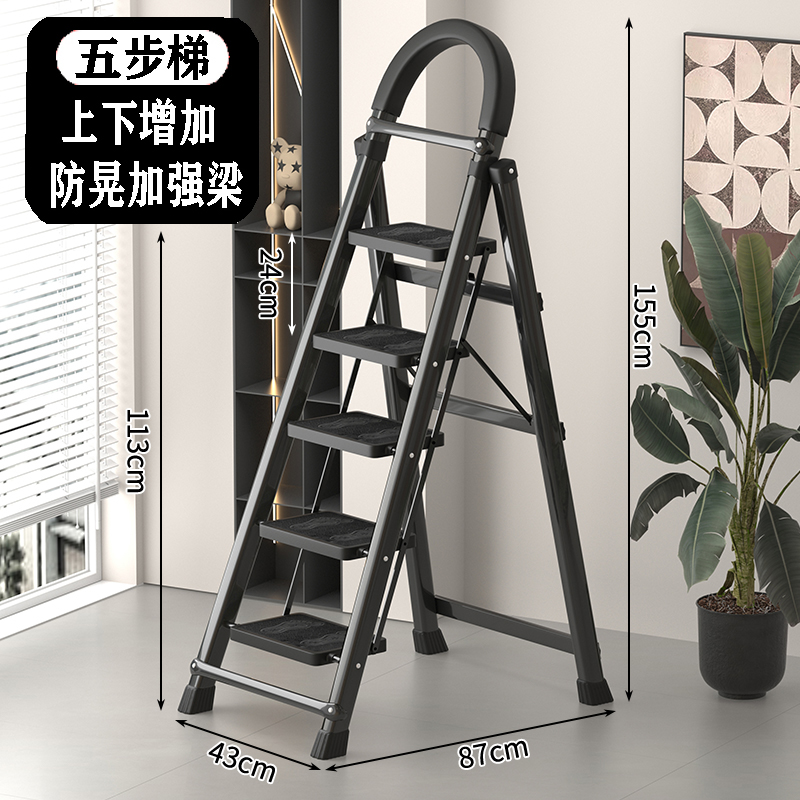 • [97%의 사람들이 선택] 두꺼워진 검정색 5단 사다리 [강화 리브 버클 페달 + 풀 페달 이중 강화 흔들림 방지 빔] - 단면 사다리