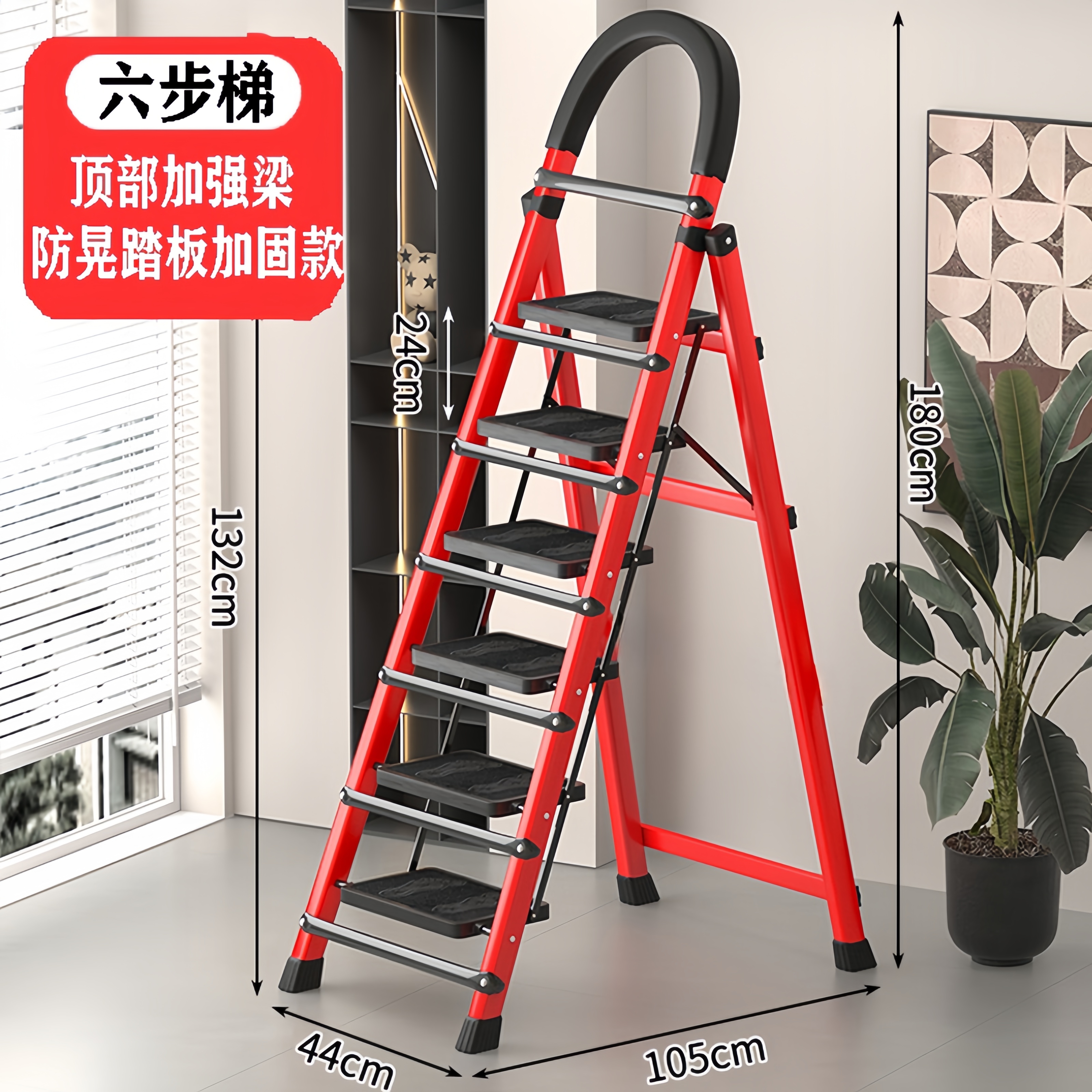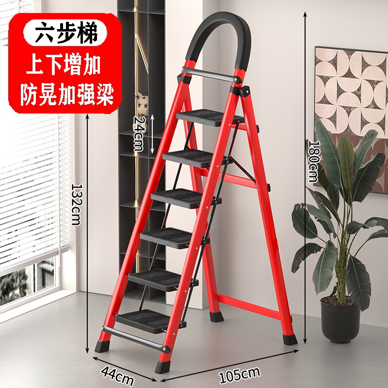 • [89%의 선택] 두꺼운 빨간색 6단 사다리 [강화 리브 버클 페달 + 풀 페달 이중 강화 흔들림 방지 빔] - 단면 사다리