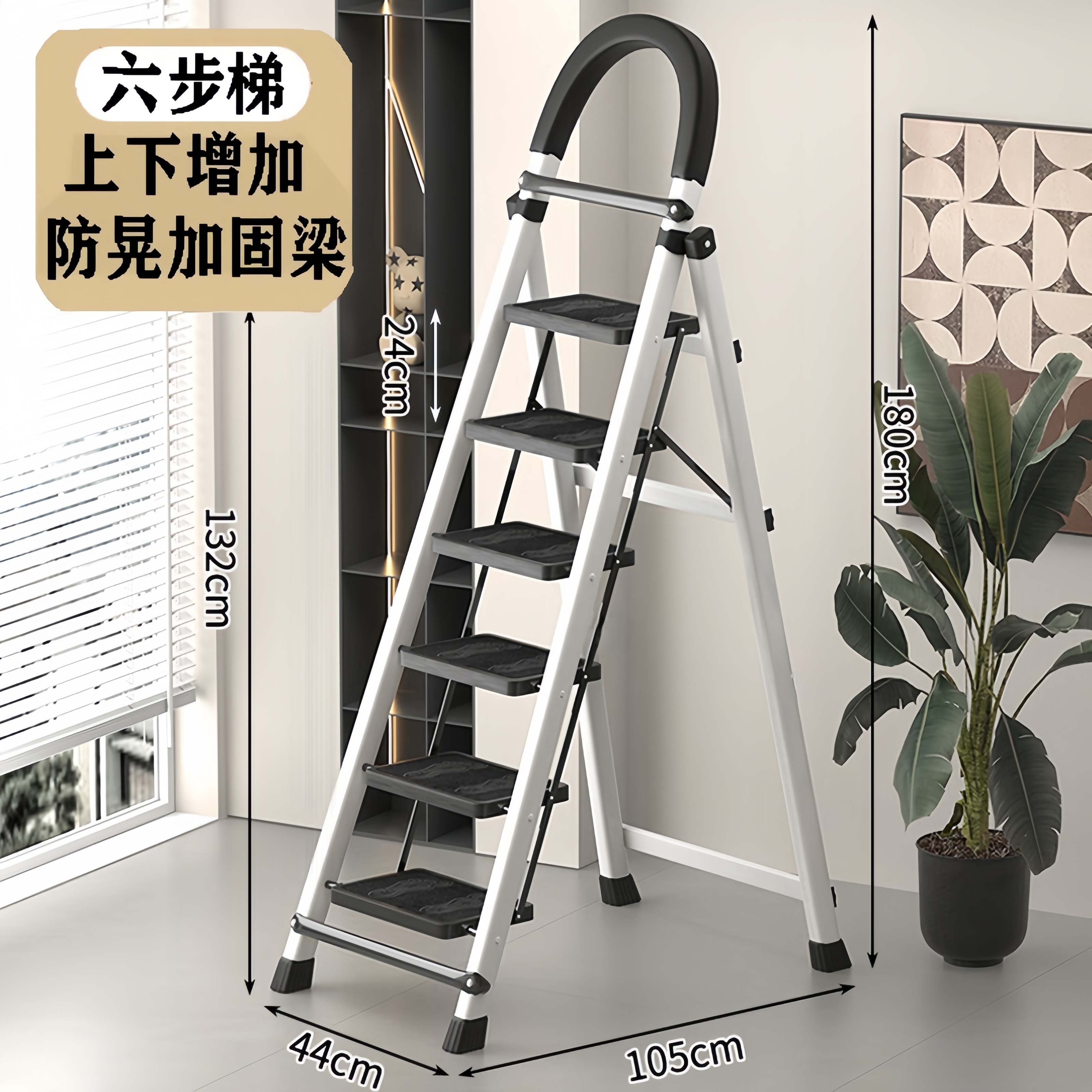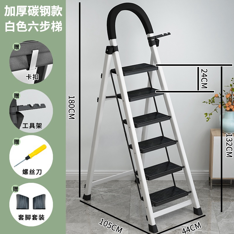• [89%의 사람들이 선택] 두꺼워진 흰색 6단 사다리 [강화 리브 버클 페달 + 풀 페달 이중 강화 흔들림 방지 빔] - 단면 사다리