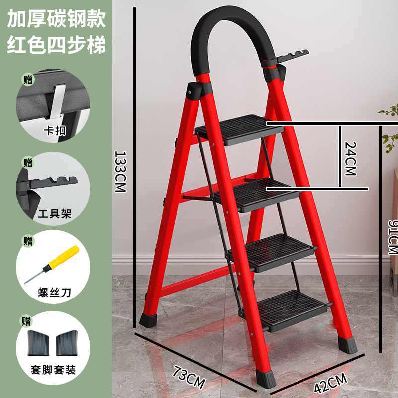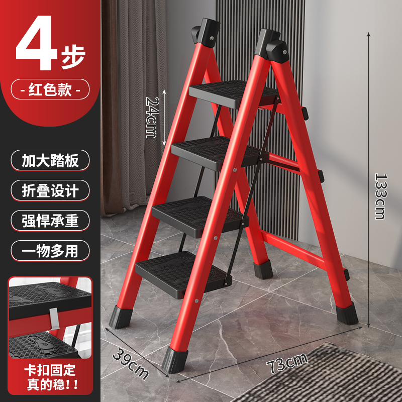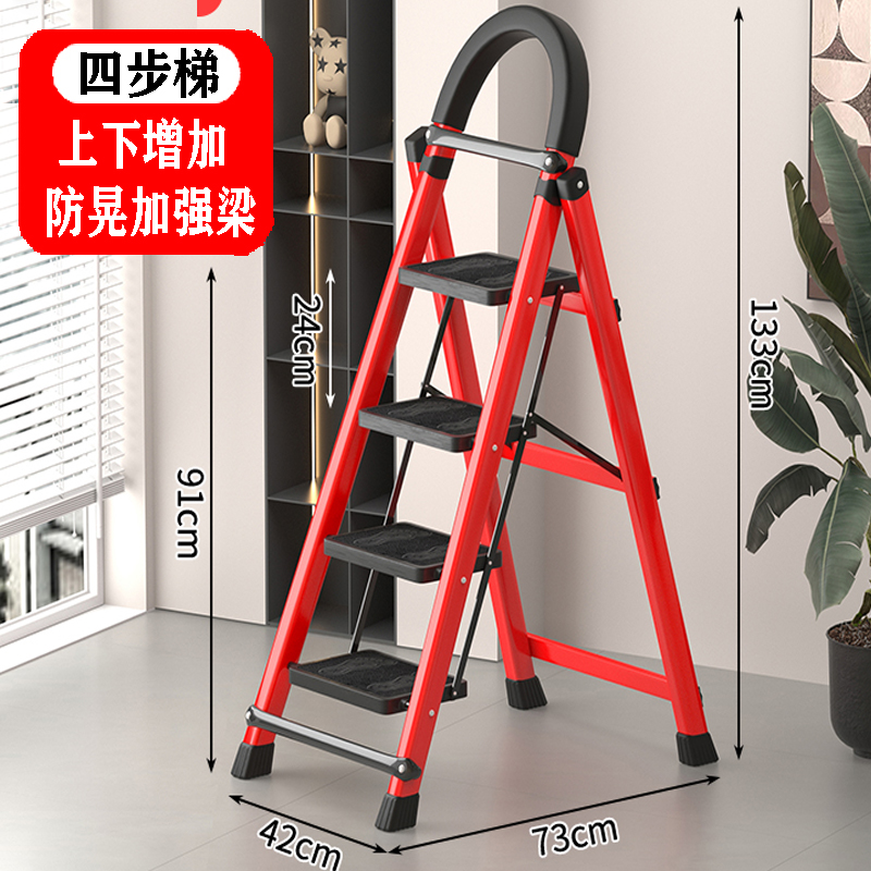 • [82% 선택] 두꺼운 빨간색 4단 사다리 [강화 리브 버클 페달 + 풀 페달 이중 강화 흔들림 방지 빔] - 단면 사다리