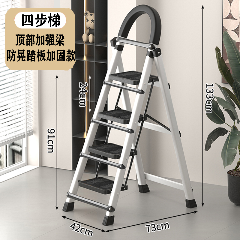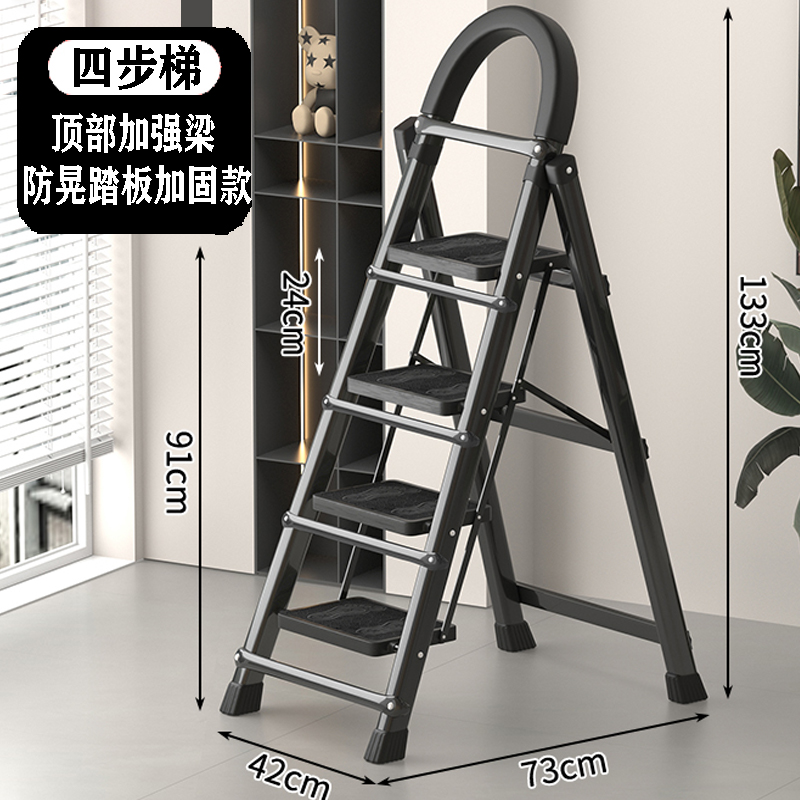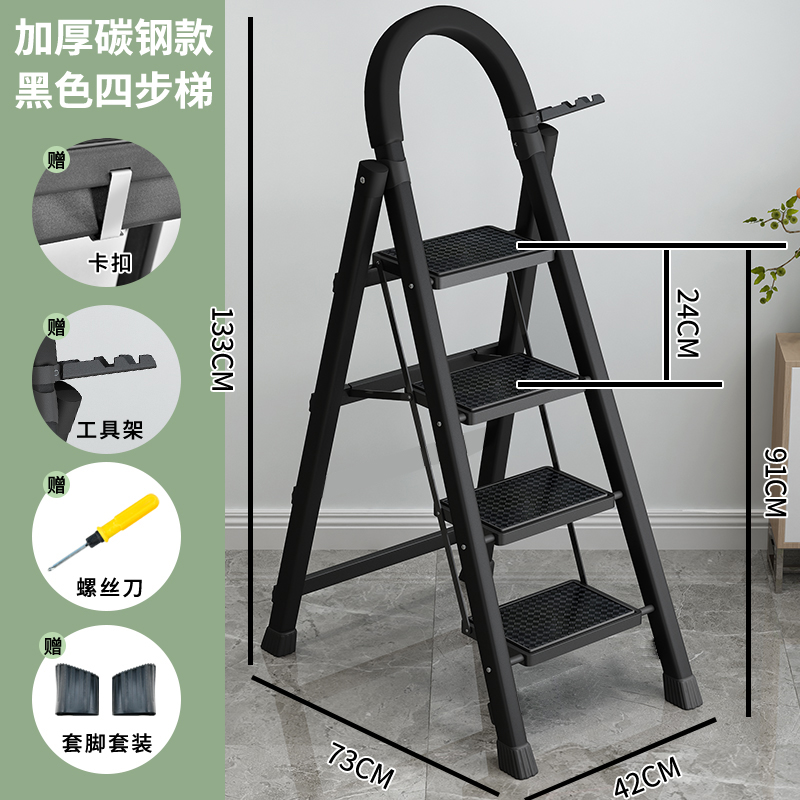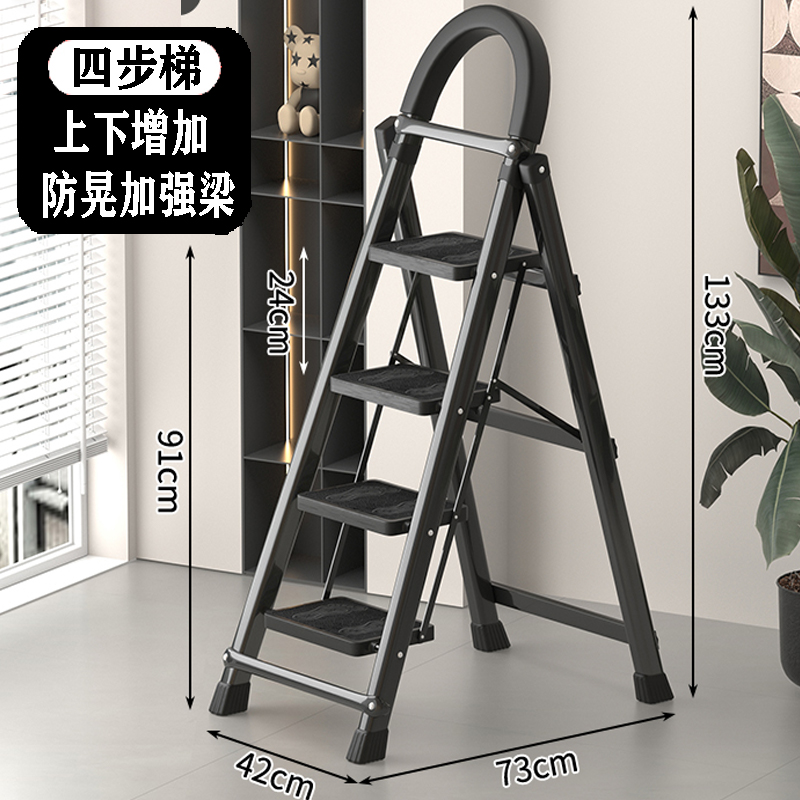 • [82% 선택] 두꺼워진 검정색 4단 사다리 [강화 리브 버클 페달 + 풀 페달 이중 강화 흔들림 방지 빔] - 단면 사다리
