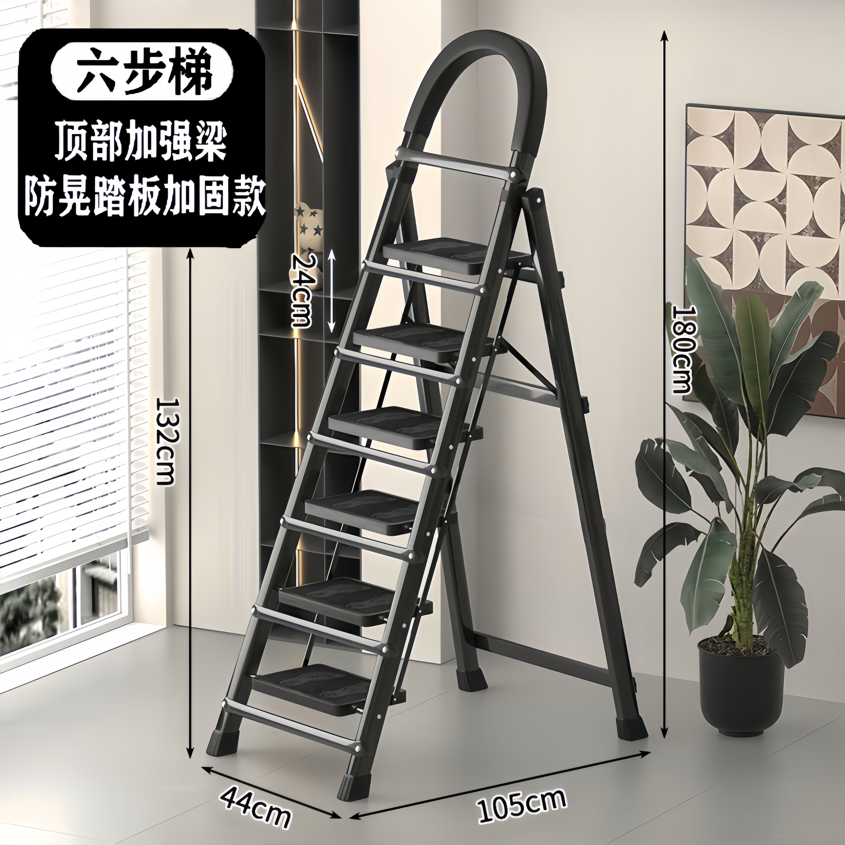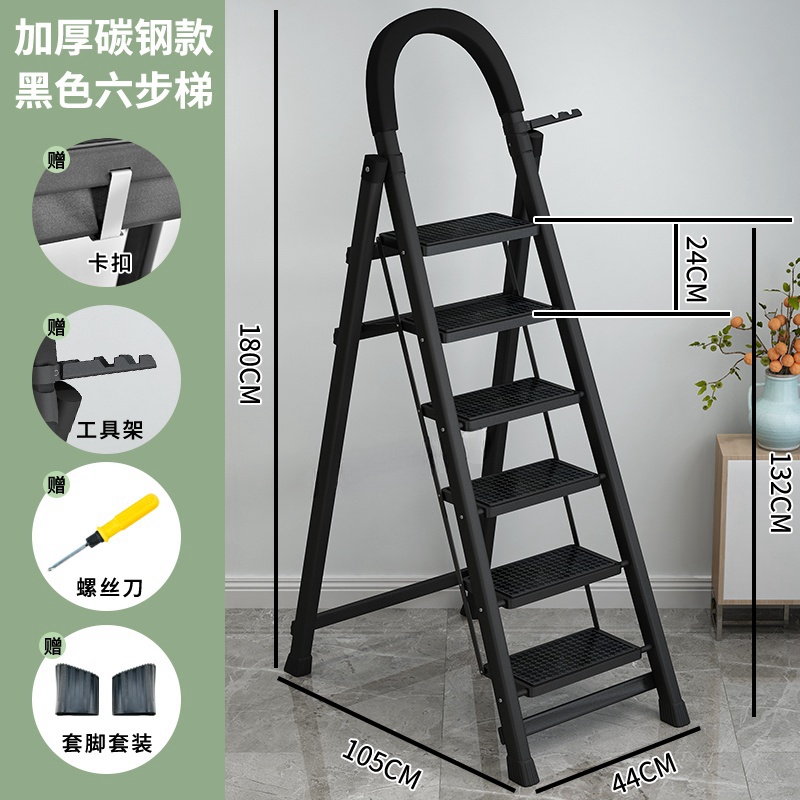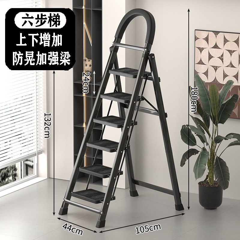 • [89%의 사람들이 선택] 두꺼워진 검정색 6단 사다리 [강화 리브 버클 페달 + 풀 페달 이중 강화 흔들림 방지 빔] - 단면 사다리