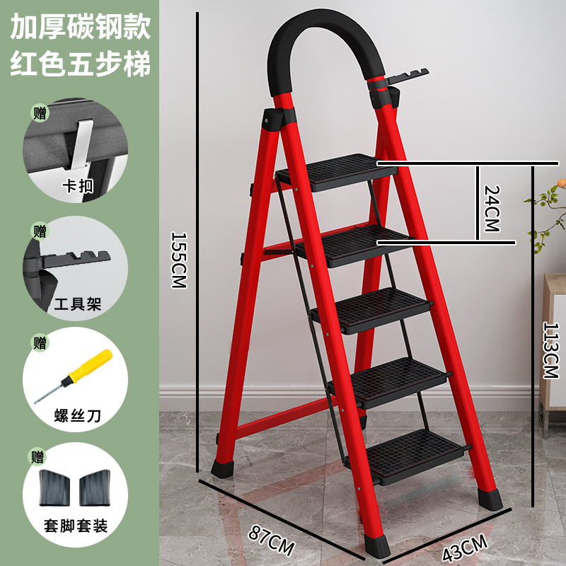 • [97%의 사람들이 선택] 두꺼운 빨간색 5단 사다리 [강화 리브 버클 페달 + 풀 페달 이중 강화 흔들림 방지 빔] - 단면 사다리