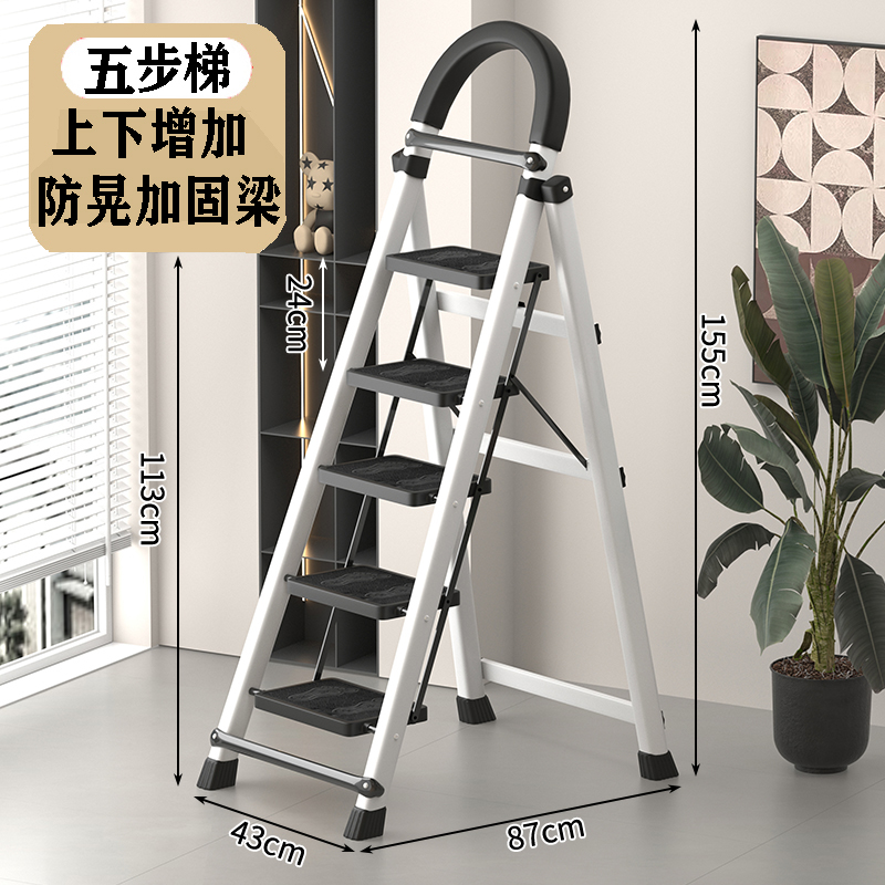 • [97%의 사람들이 선택] 두꺼워진 흰색 5단 사다리 [강화 리브 버클 페달 + 풀 페달 이중 강화 흔들림 방지 빔] - 단면 사다리