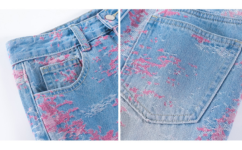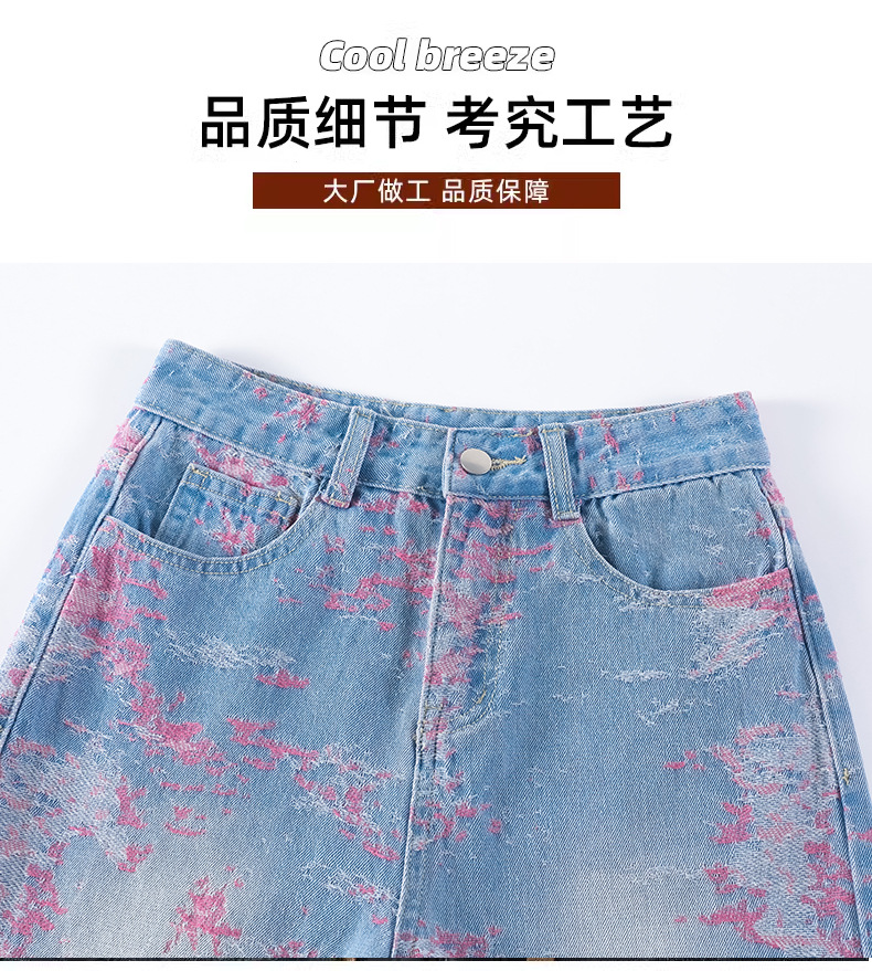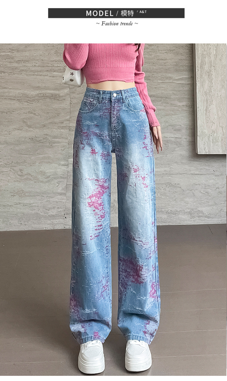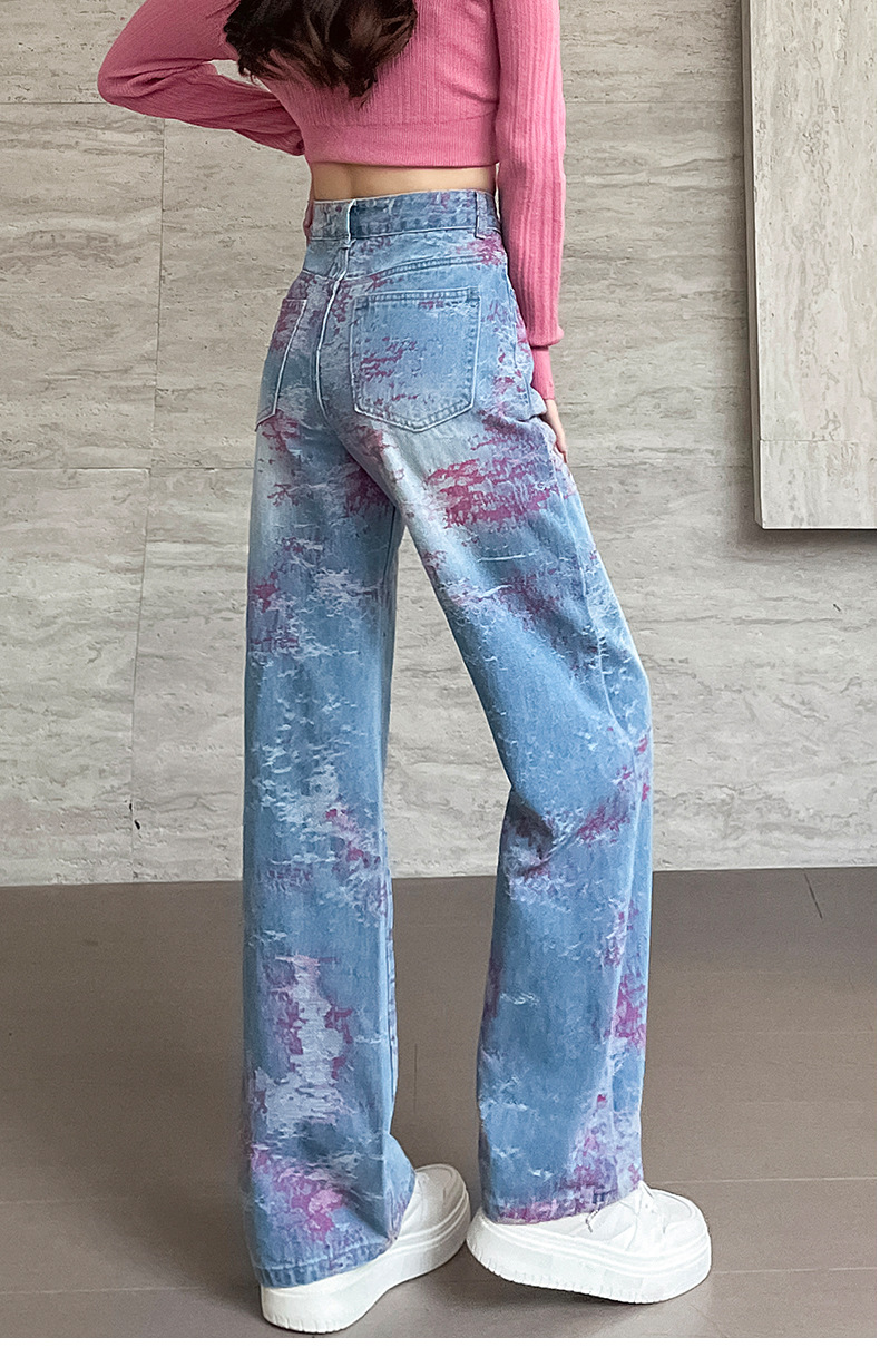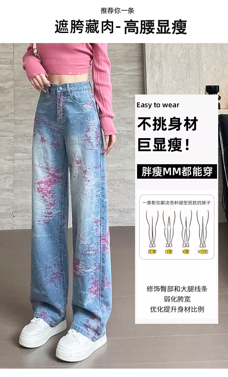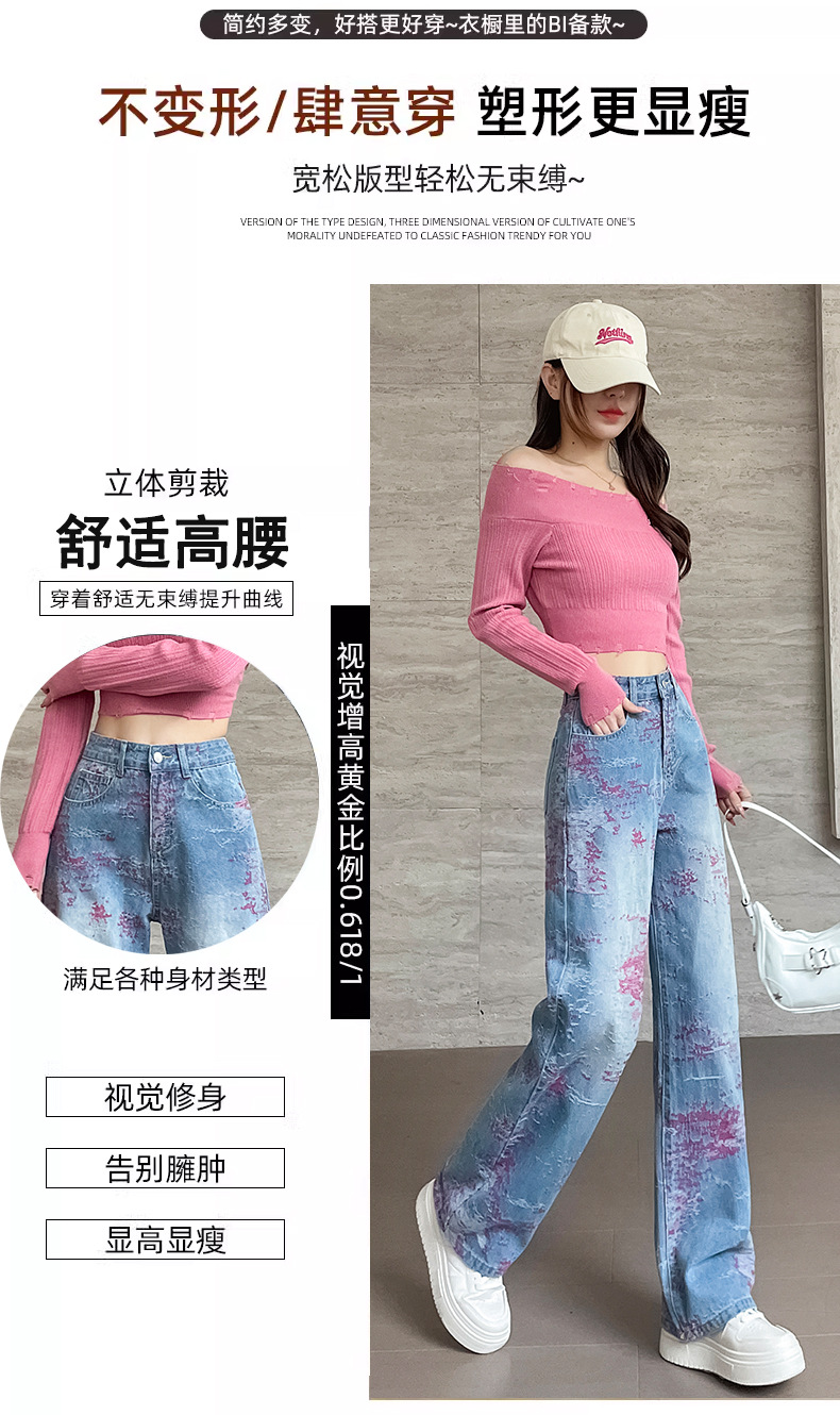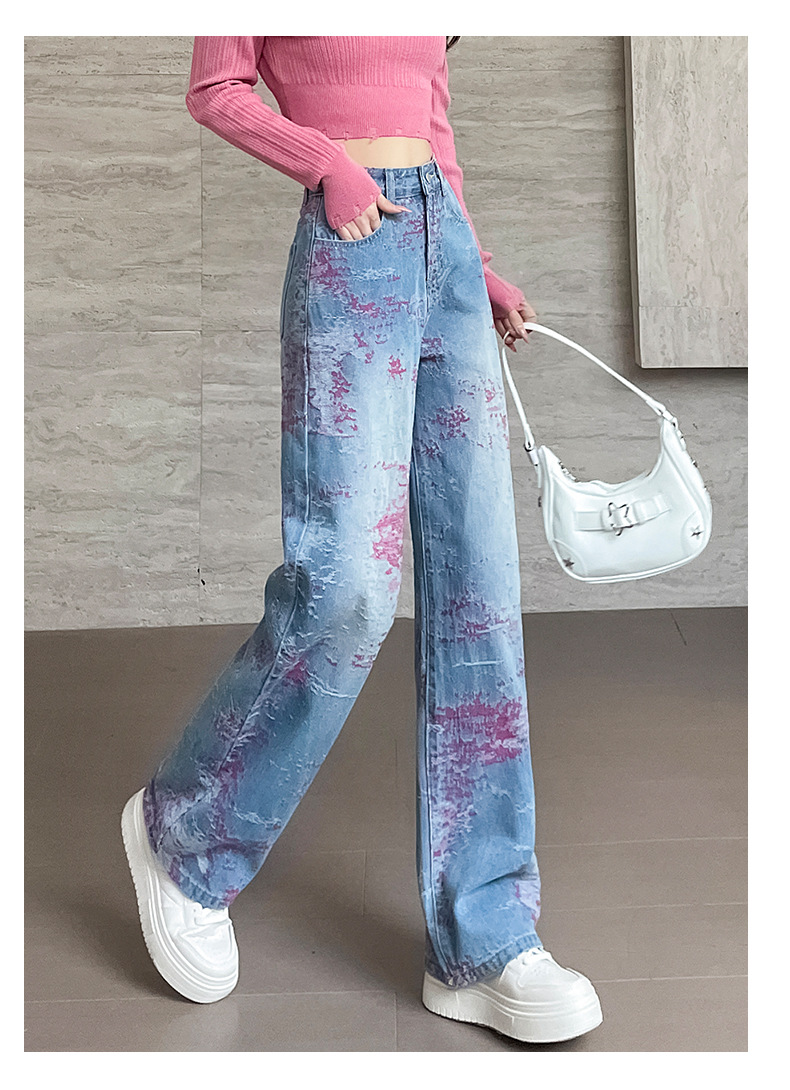 봄 0128 2025 스트레이트 다리 넓은 다리 청바지 핑크 보라색 대비 높은 허리 살로 느슨한 데님 여성 바지스토어 가기