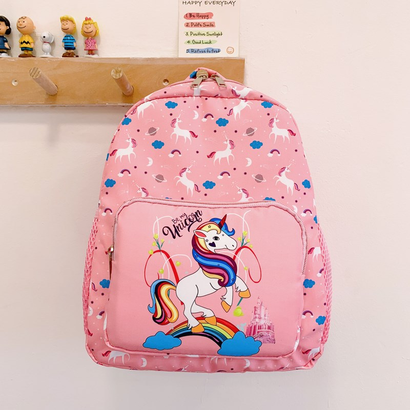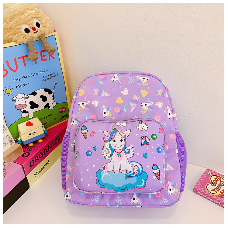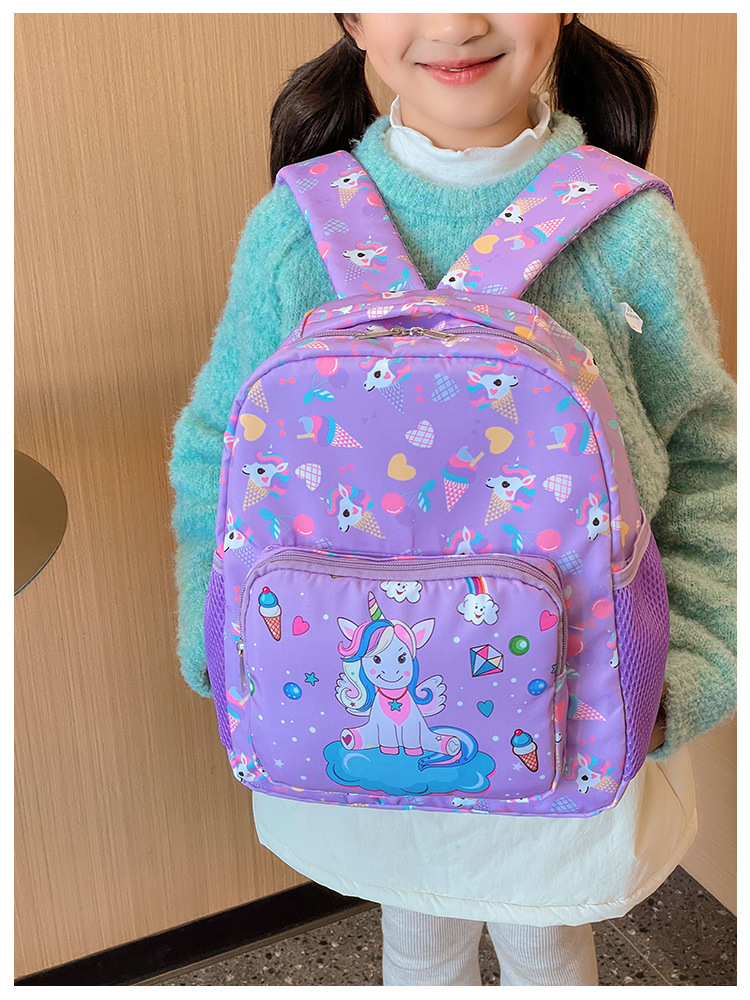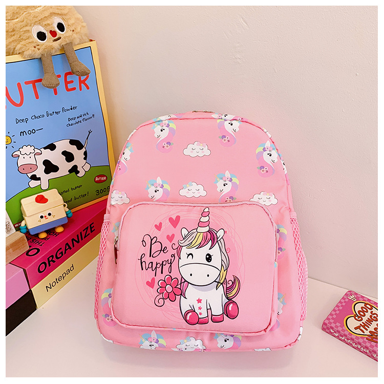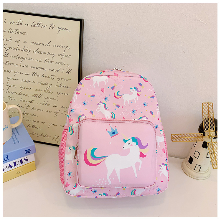 어린이 가방 2025 봄과 여름 새로운 나일론 배낭 만화 유니콘 인쇄 초등 학생을위한 귀여운 작은 배낭스토어 가기
