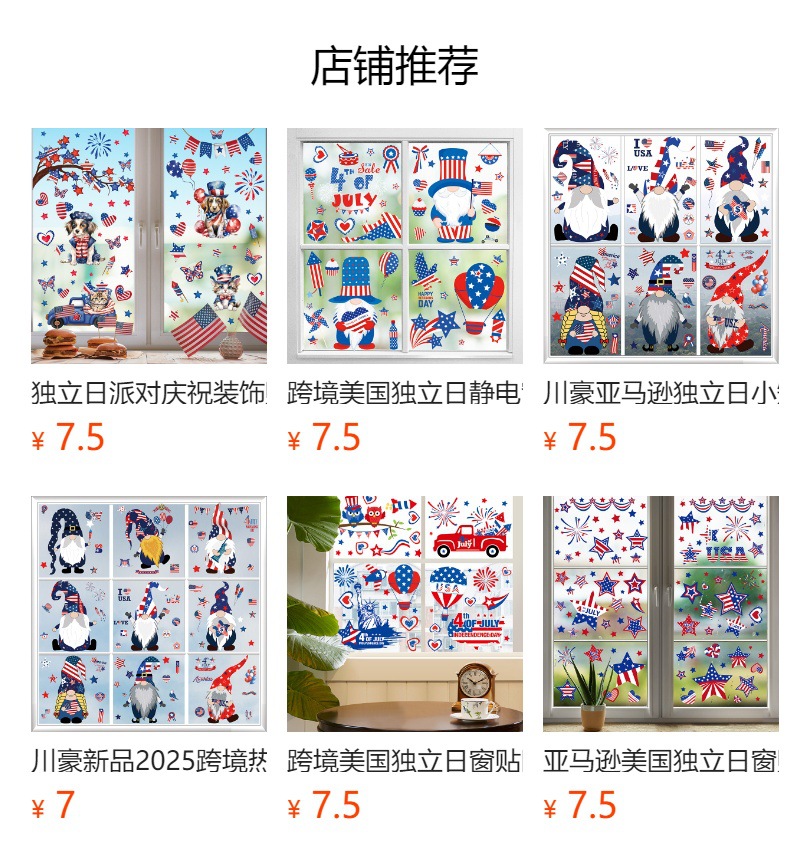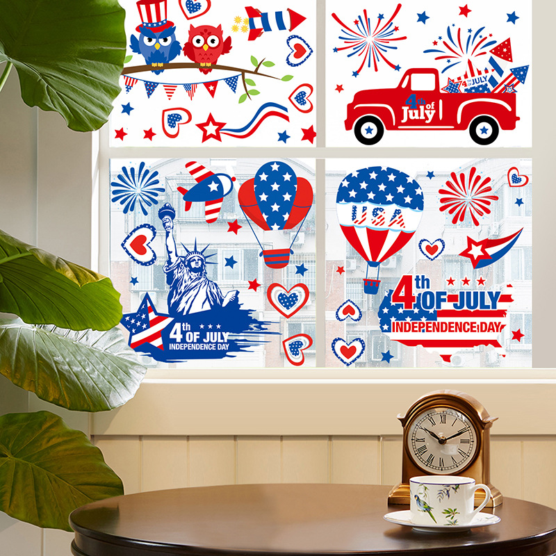 Chuanhao 신제품 아마존 뜨거운 판매 독립 기념일 점상 유리 정전기 접착제없는 스티커 휴일 장식 스티커스토어 가기