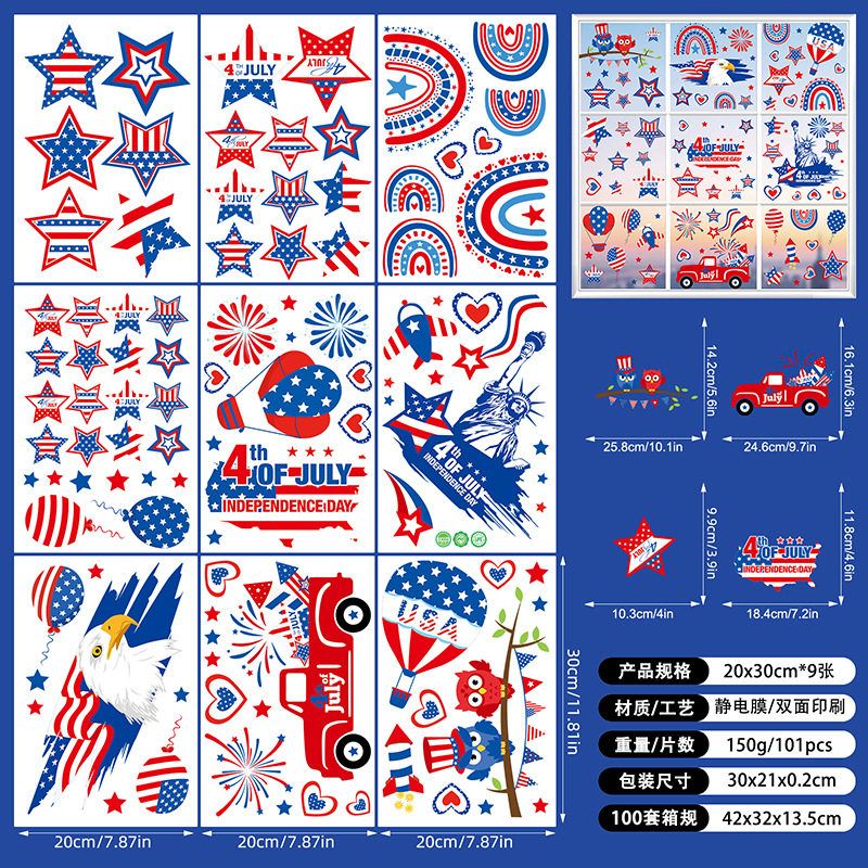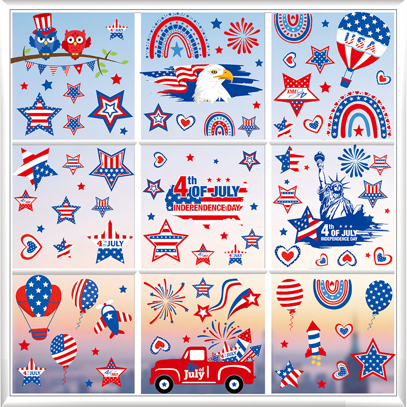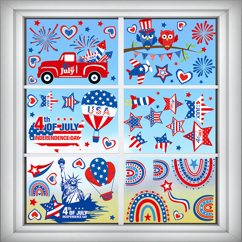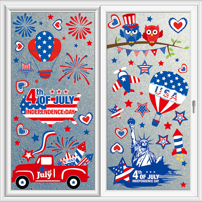 Chuanhao 신제품 아마존 뜨거운 판매 독립 기념일 점상 유리 정전기 접착제없는 스티커 휴일 장식 스티커