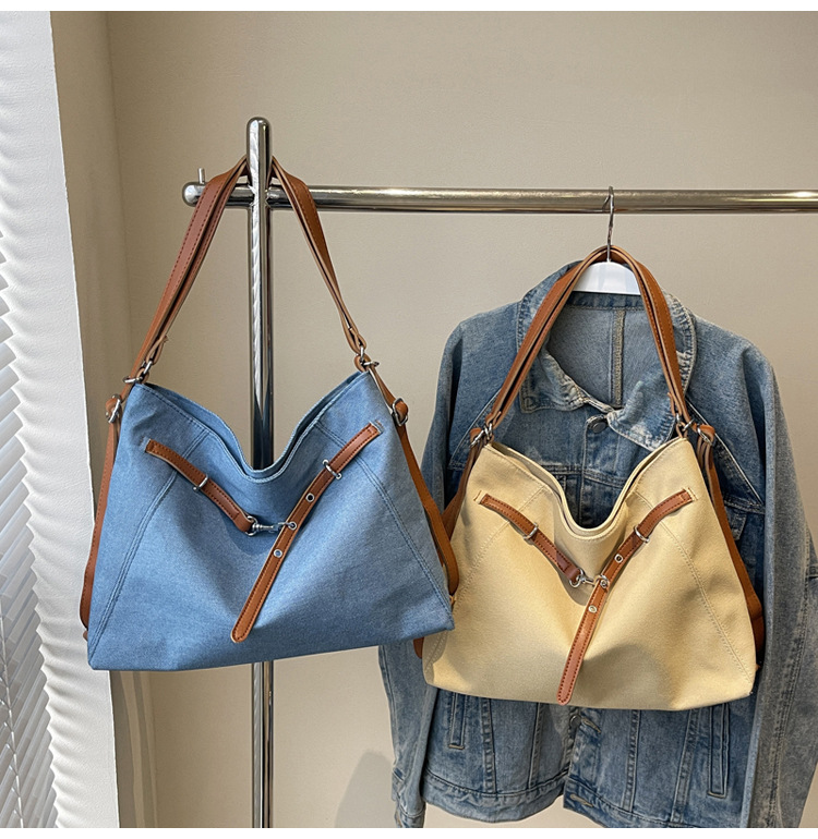 캔버스 통근 토트 백 여성 대용량 올 매치 새로운 봄 및 여름 캐주얼 어깨 크로스 바디 백 3 사용 배낭스토어 가기