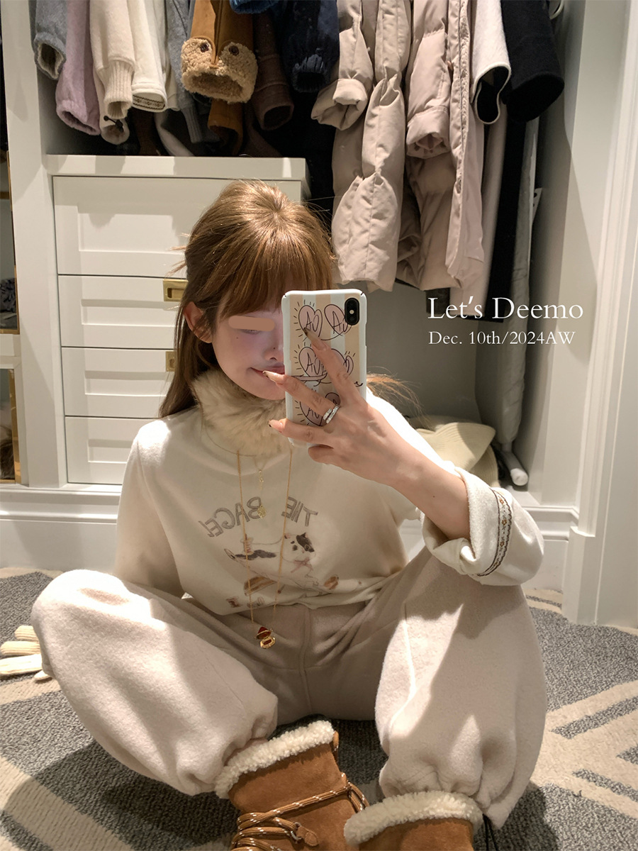 DEEMO STUDIO 수제 시리즈! 여기에 활이 달린 키티 재봉틀 티셔츠가 있습니다! 올 매치 여성 겨울