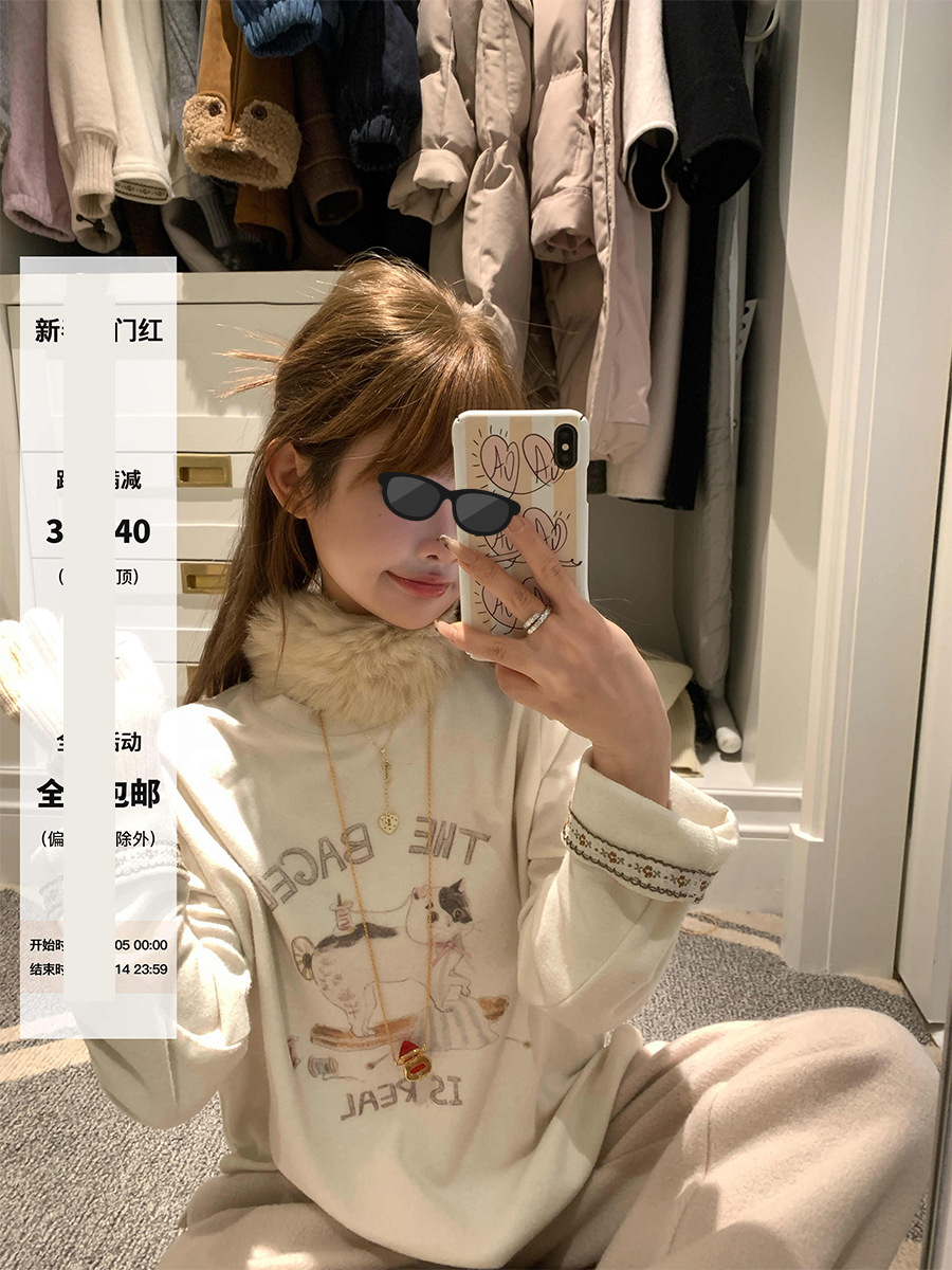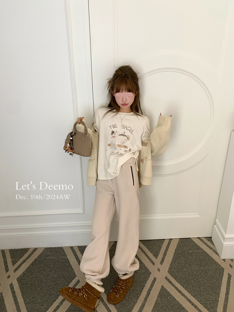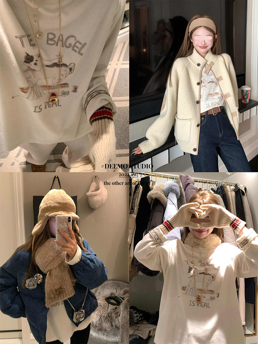 DEEMO STUDIO 수제 시리즈! 여기에 활이 달린 키티 재봉틀 티셔츠가 있습니다! 올 매치 여성 겨울스토어 가기