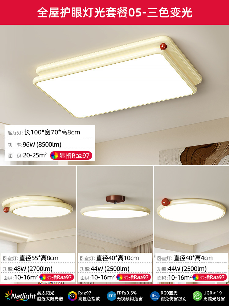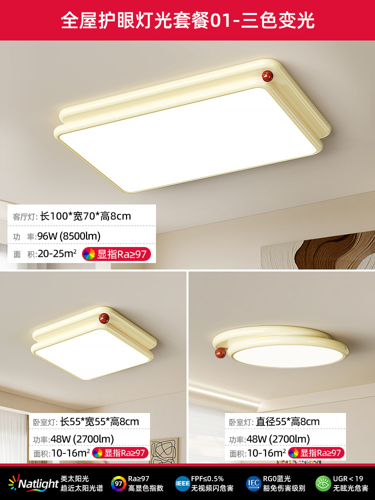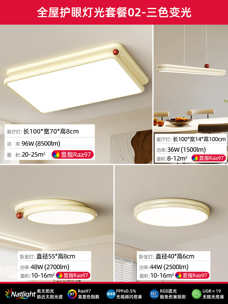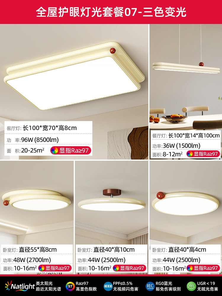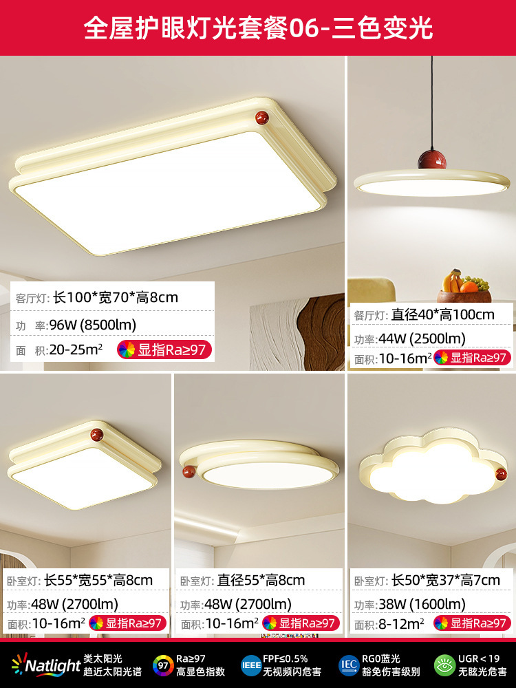 프랑스 크림 스타일 거실 램프 전체 오프 스펙트럼 눈 보호 간단한 천장 램프 간단한 램프 조합 중산 전체 하우스 패키지스토어 가기