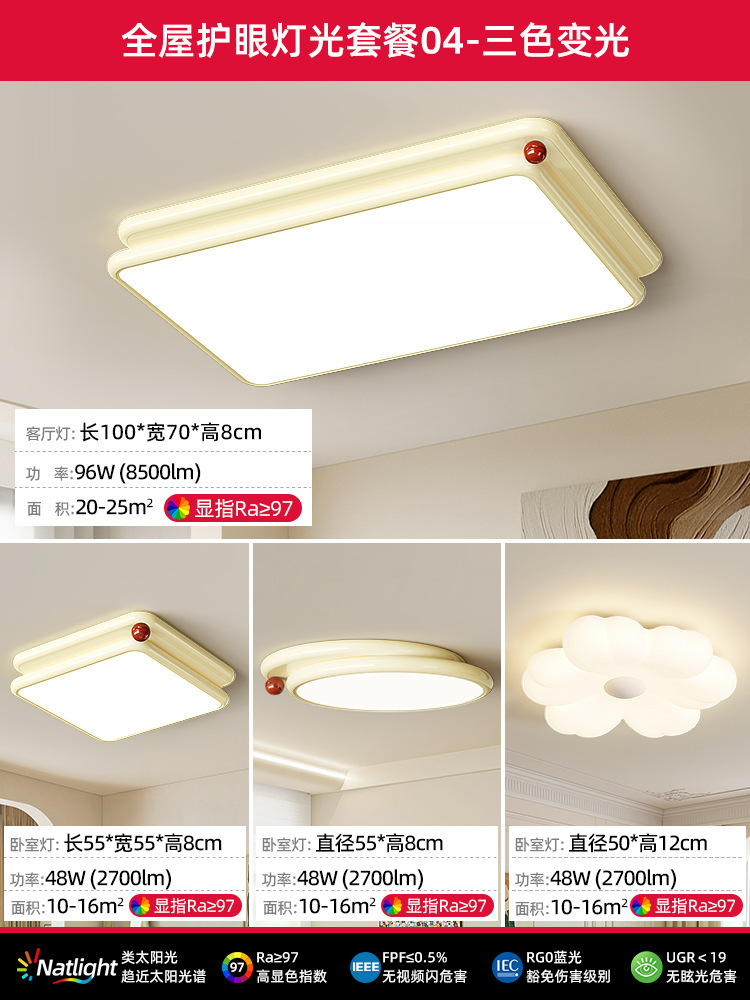 프랑스 크림 스타일 거실 램프 전체 오프 스펙트럼 눈 보호 간단한 천장 램프 간단한 램프 조합 중산 전체 하우스 패키지