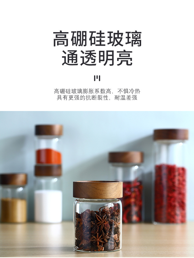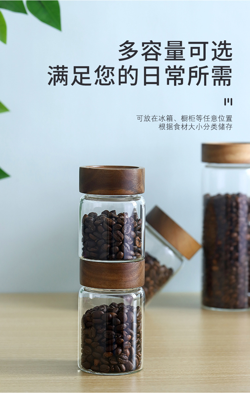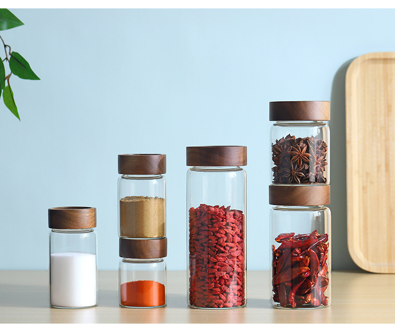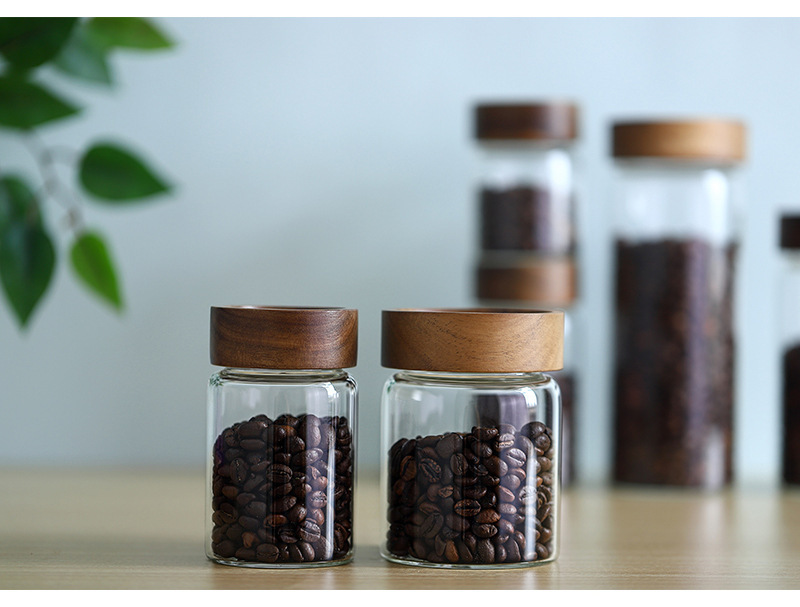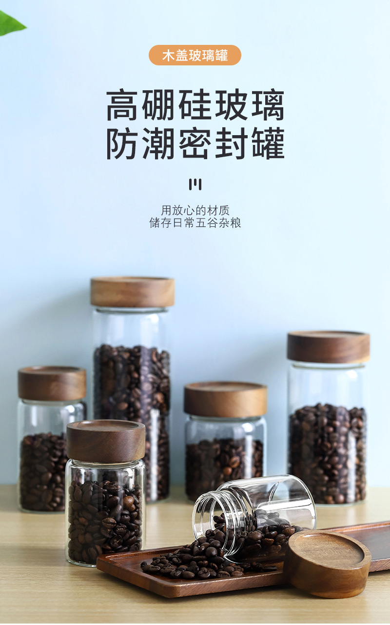 도매 주방 저장 밀봉 붕규산염 방열 유리 항아리 아카시아 나무 커피 콩 저장 거친 곡물 차 항아리
