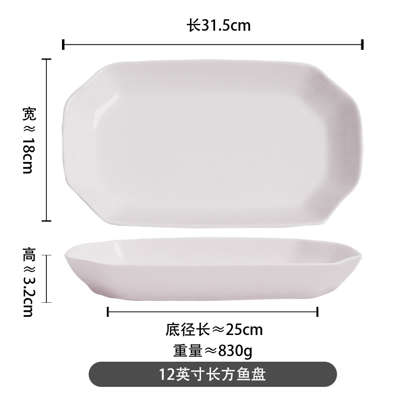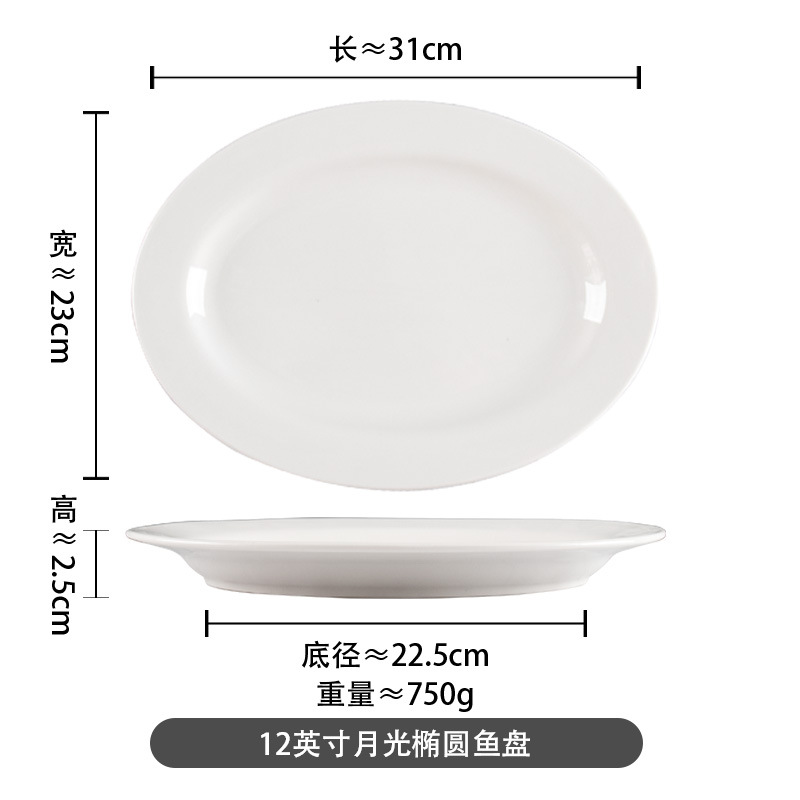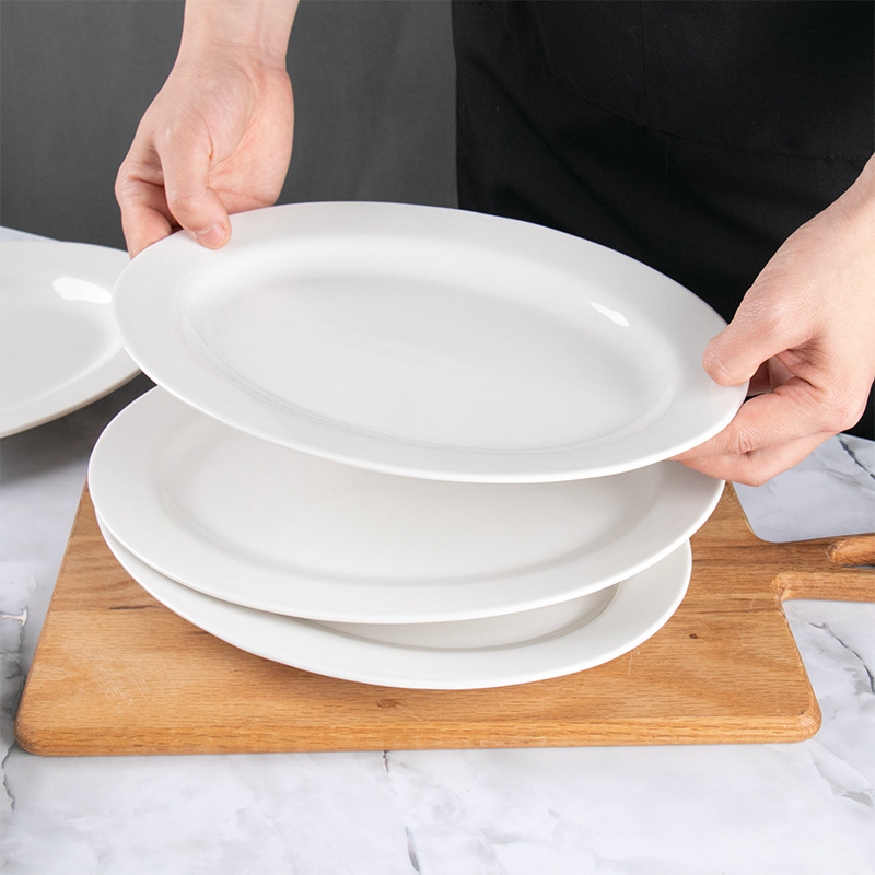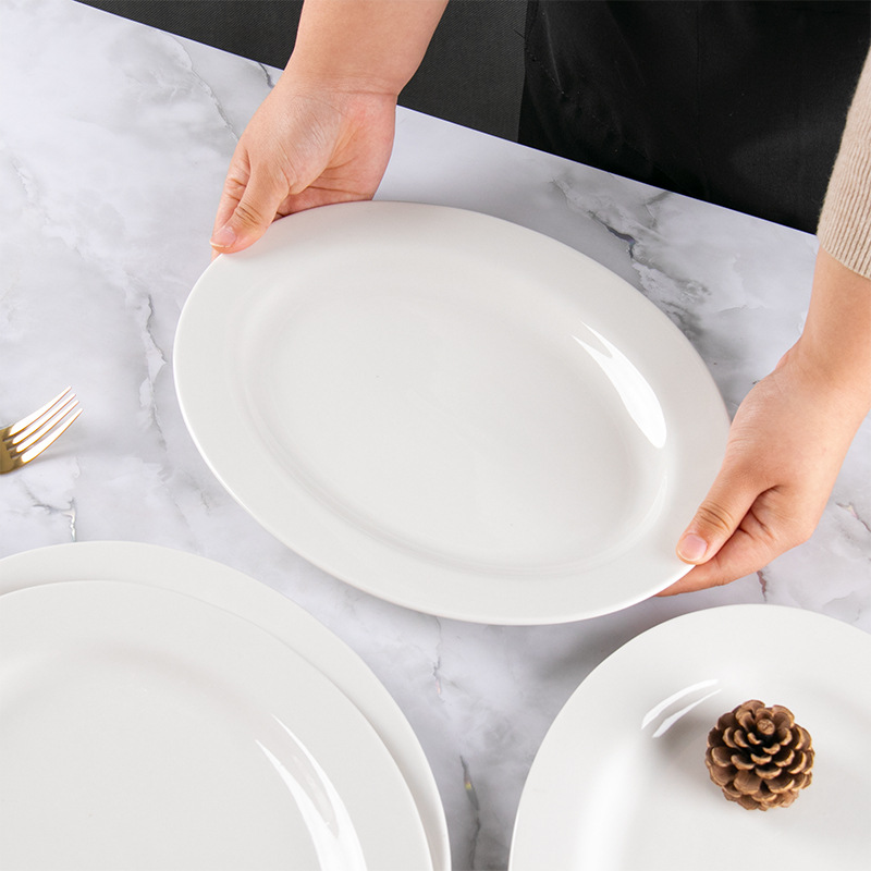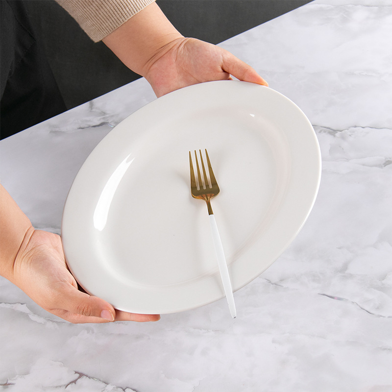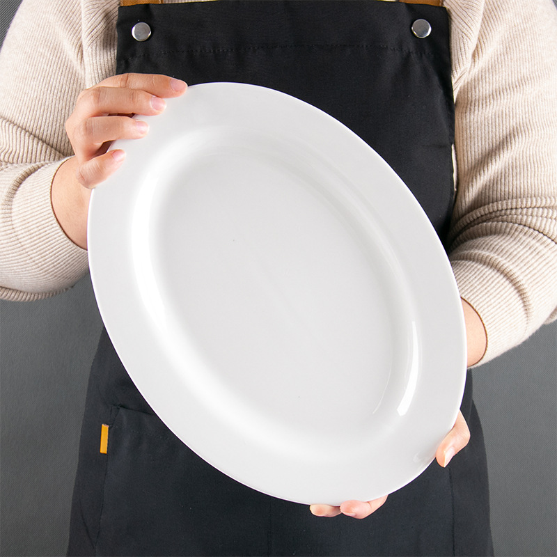 순수한 흰색 세라믹 생선 접시 두꺼운 측면 타원형 가정용 플레이트 대형 레스토랑 호텔 식사