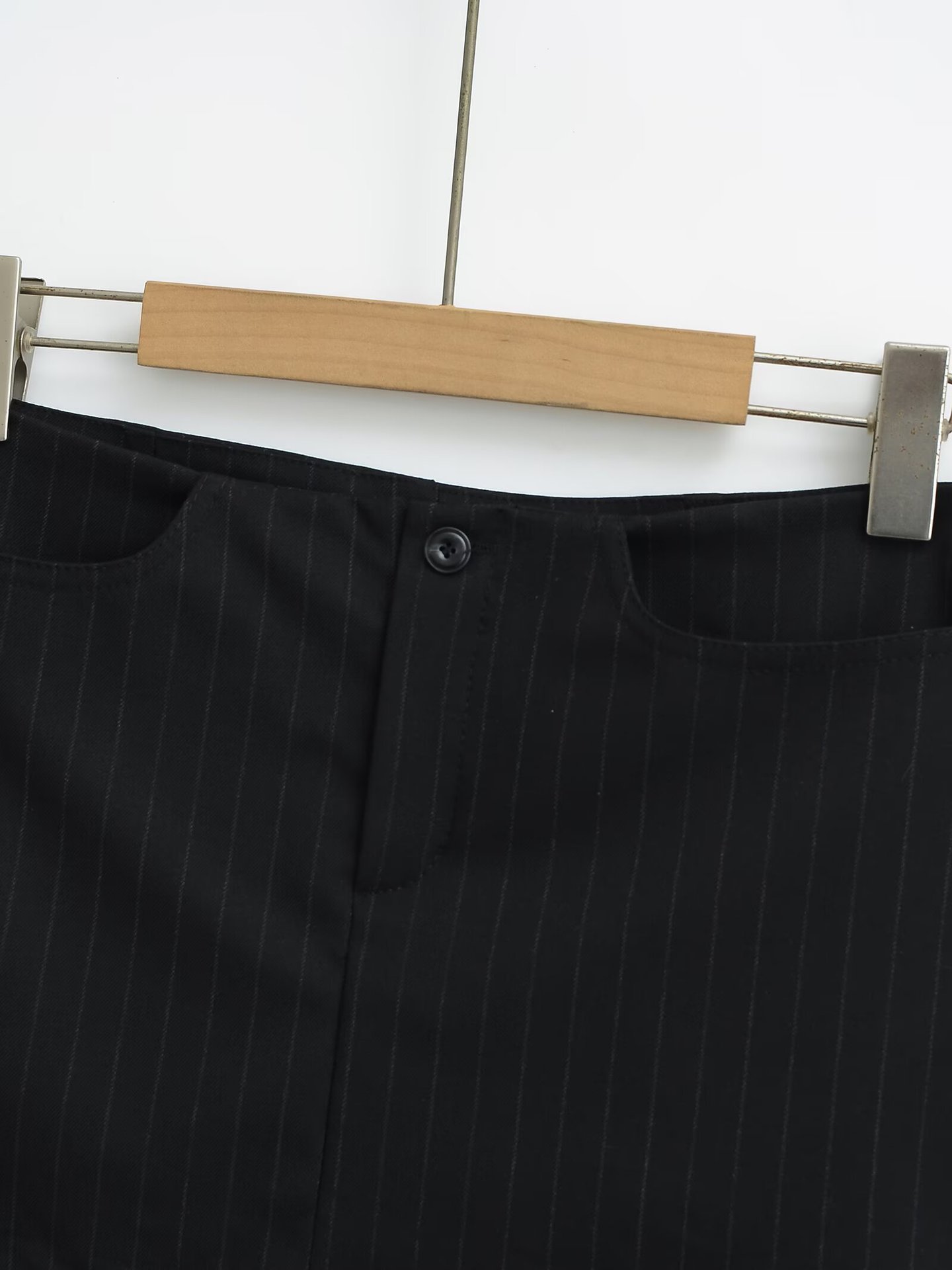 BM 스타일 새로운 스타일 뜨거운 소녀 높은 허리 수직 스트라이프 올 매치 스커트 짧은 스커트 Bm 여성용 안티 워킹 바지 스커트 치마