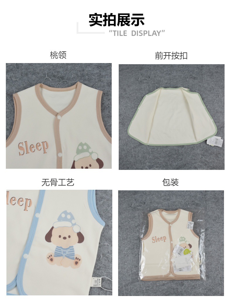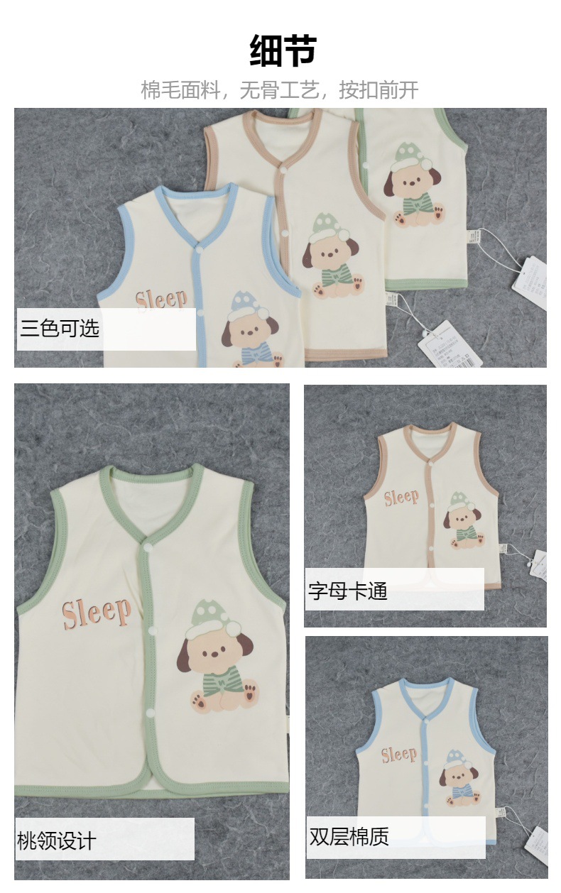 25 봄과 가을 새로운 아기 더블 양복 조끼 코튼 모직 뼈없는 만화 아기 조끼 앞 스냅 버튼 73-90 야드