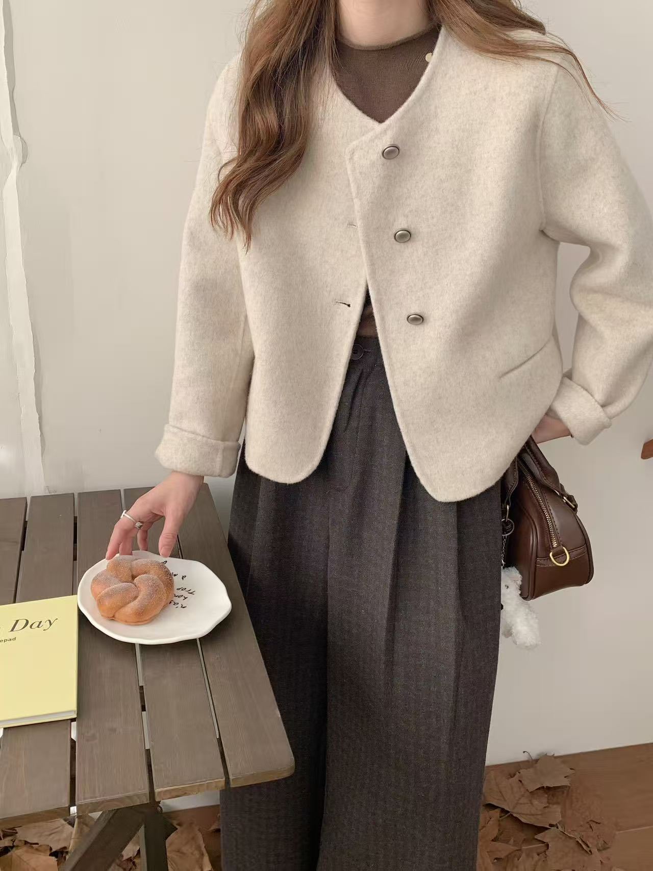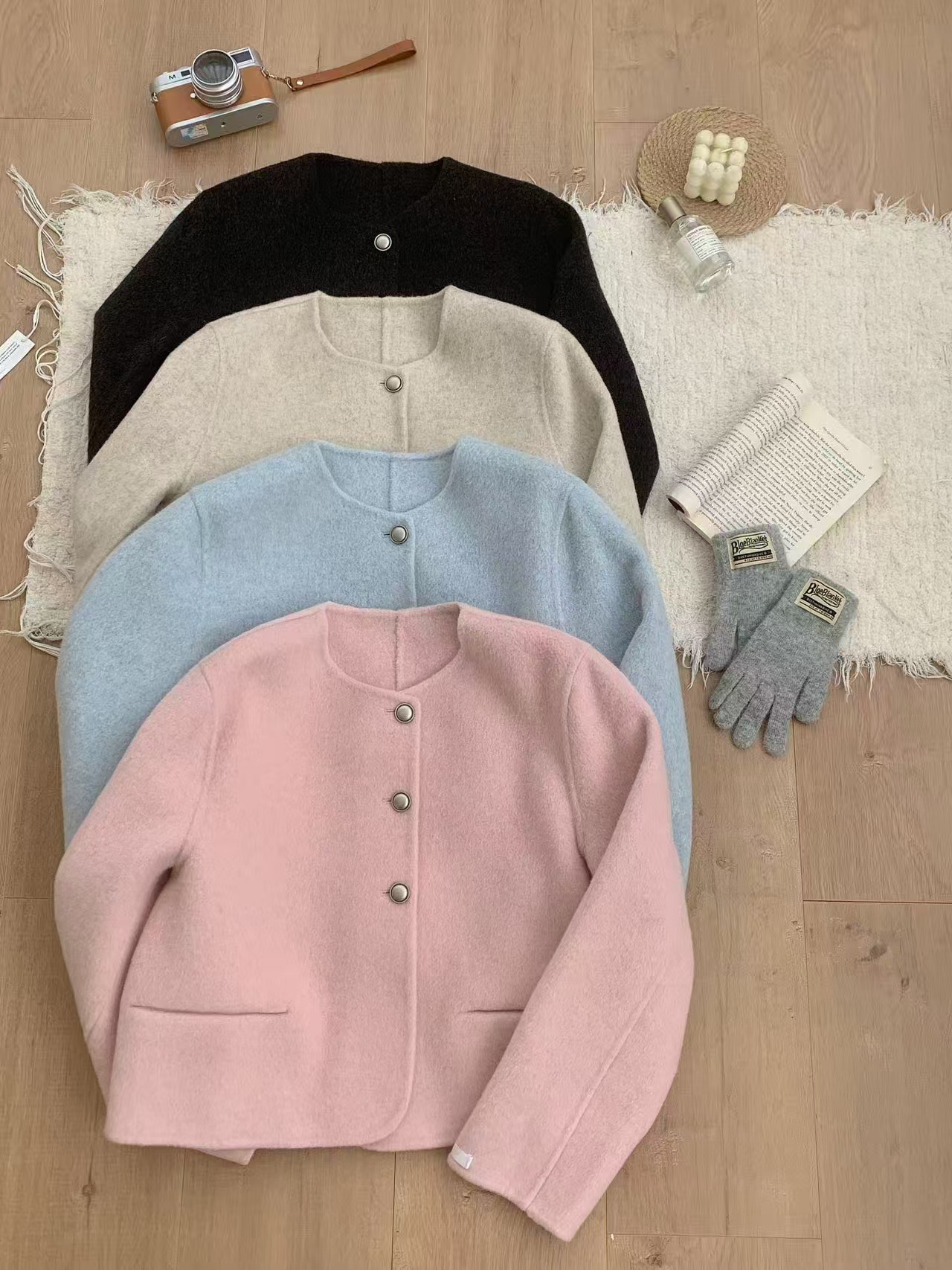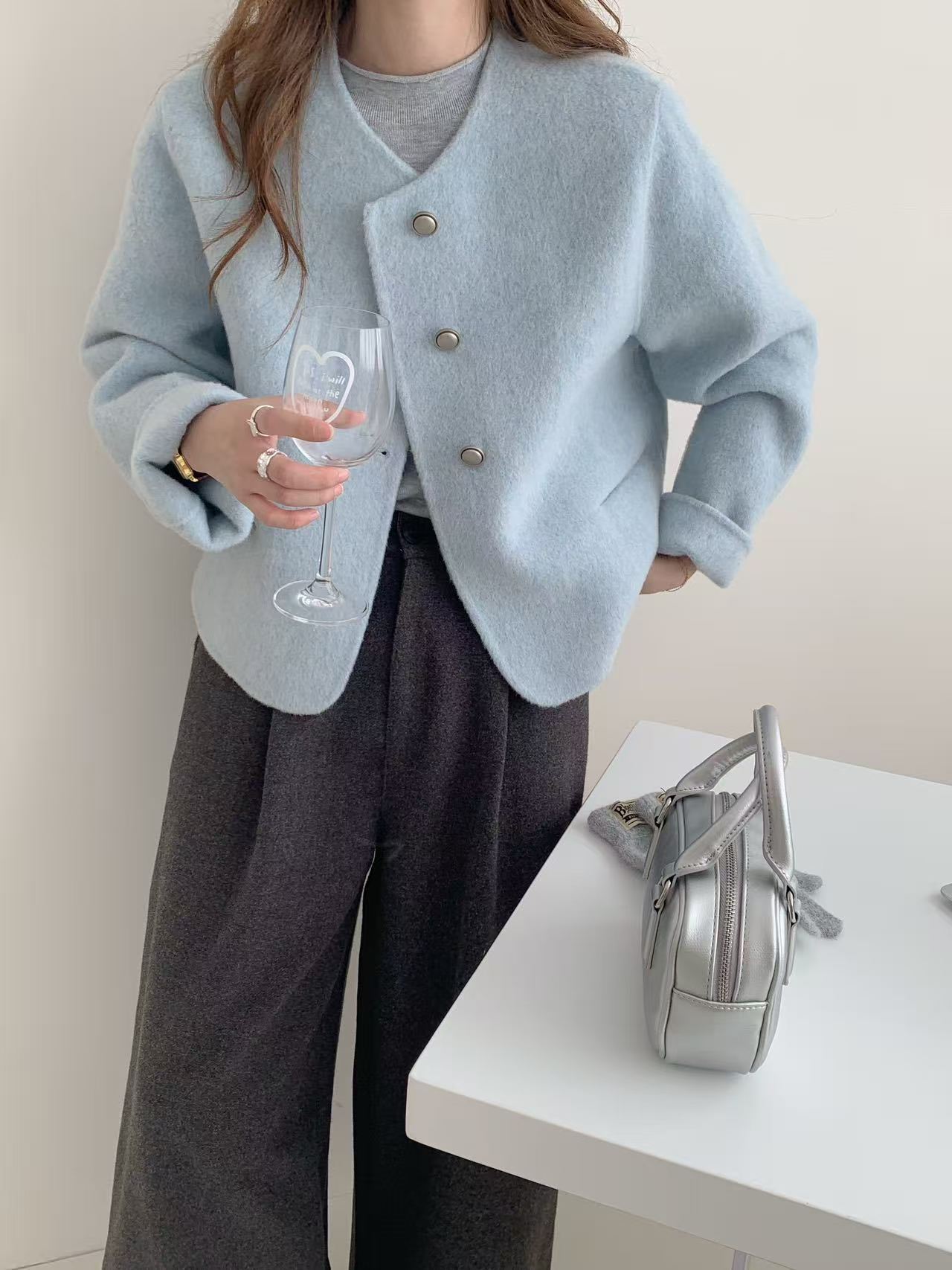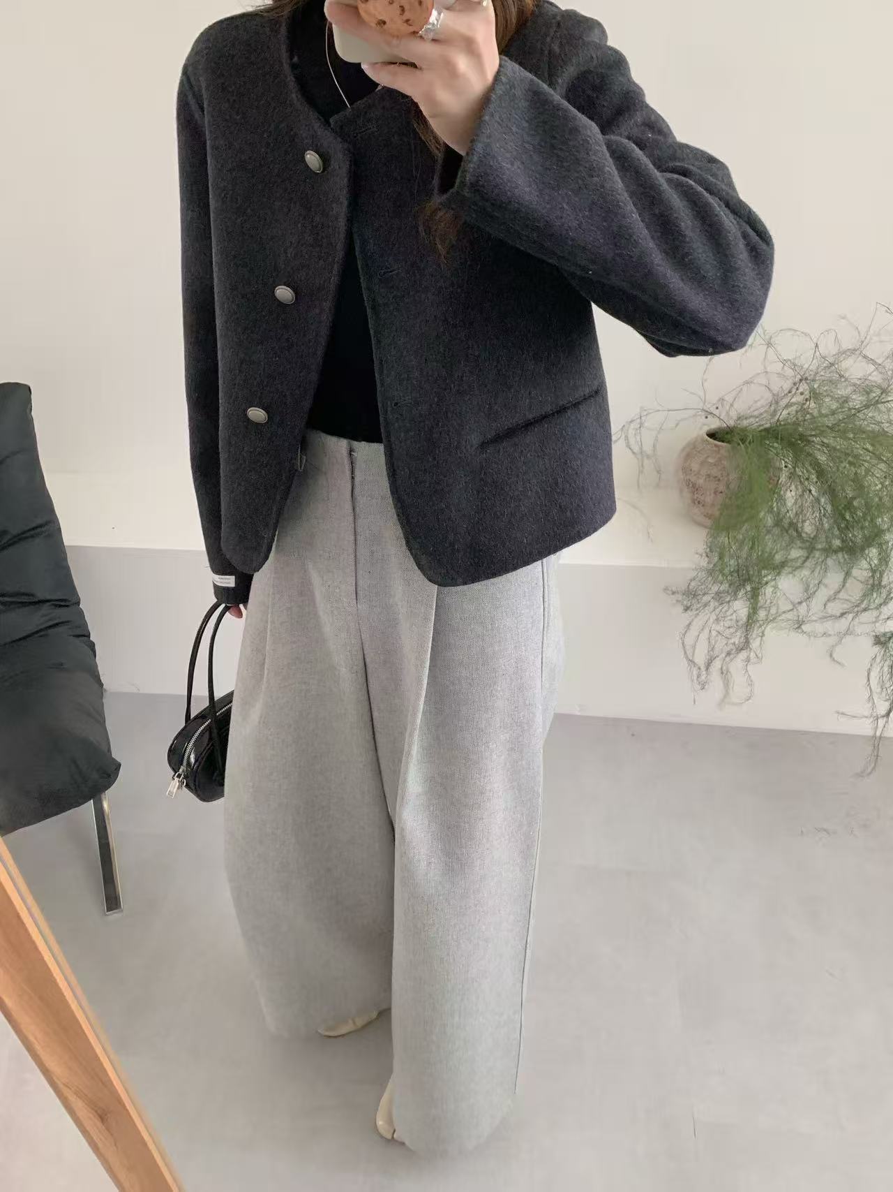 25 이른 봄 새 스타일 샤넬 스타일 울 코트 여성의 우아한 하이 엔드 센스 연예인 올 매치 슬림 핏 라운드 넥 울 코트스토어 가기