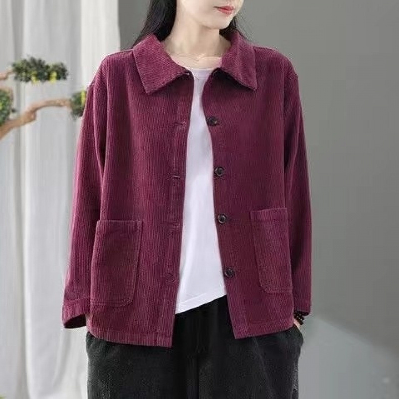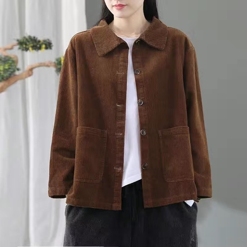 빈티지 옷깃 코듀로이 코트 여성 예술적 느슨한 올 매치 쇼트 재킷 봄과 가을 긴팔 벨벳 카디건 탑스토어 가기