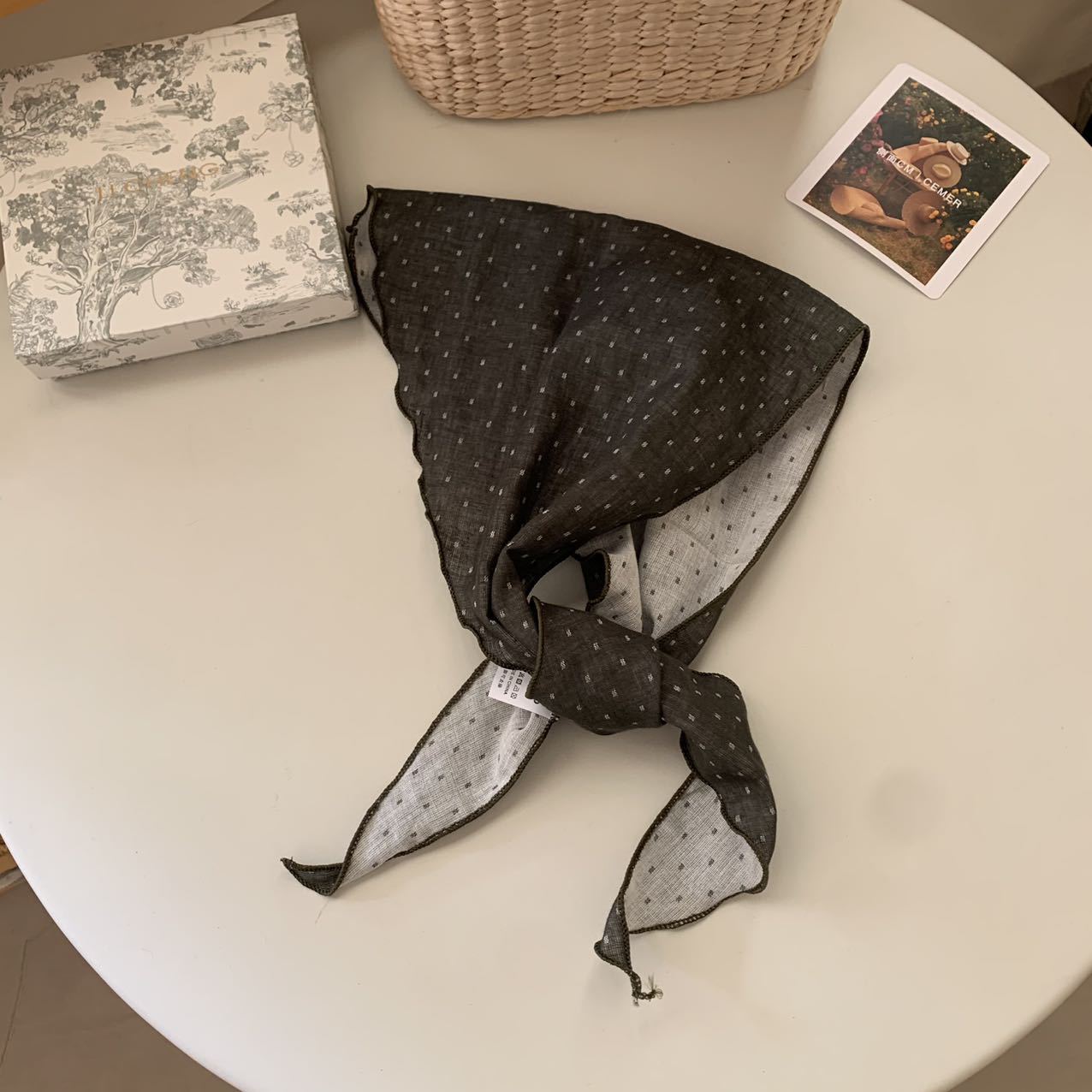 한국식 블랙 폴드 도트 작은 실크 스카프 통근 올 매치 넥 보호 스카프 우아한 스카프 틈새 목 스카프스토어 가기