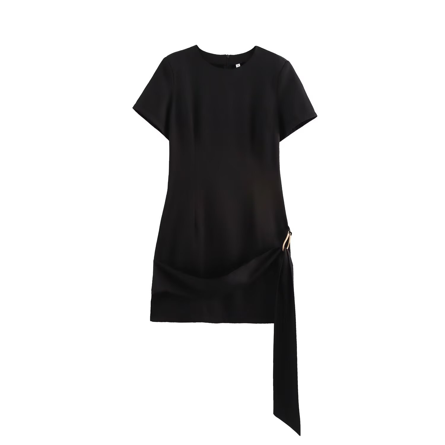 6968-유럽과 미국 스타일의 뜨거운 소녀 섹시한 말굽 버클 짧은 소매 원피스 여성 2025 새로운 허리 슬림 엉덩이 치마스토어 가기