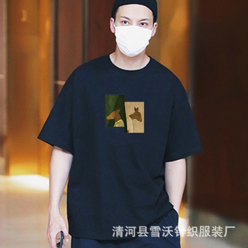 여름 뉴 코튼 반팔 남성 티셔츠 플러스 사이즈 루즈 캐주얼 올 매치 학생 반소매 Ins 트렌디 티셔츠 남성베이스스토어 가기