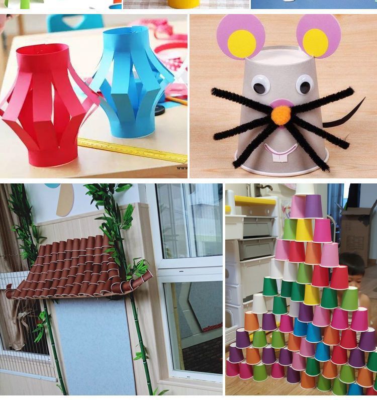컬러 종이컵 일회용 홈 유치원 장난감 DIY 소재 반지 창조 건물 장식 혼합 팩 원피스 도매스토어 가기