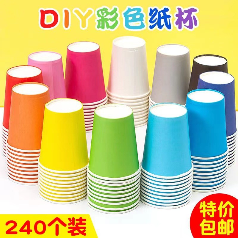 컬러 종이컵 일회용 홈 유치원 장난감 DIY 소재 반지 창조 건물 장식 혼합 팩 원피스 도매