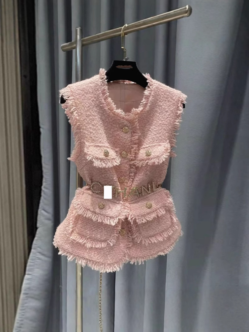 这是一款超级梦幻的时尚单品——名媛粉色闪闪设计感坎肩无袖马夹!💖这款坎肩真的是时尚界的小心机,粉色的色调让人一眼爱上,搭配任何下装都能轻松驾驭!无论是搭配白色衬衫,还是牛仔裤,瞬间提升你的气质!🌟而且它的设计感满满,闪闪的细节让你在人群中脱颖而出,简直就是聚会、约会的最佳选择!✨