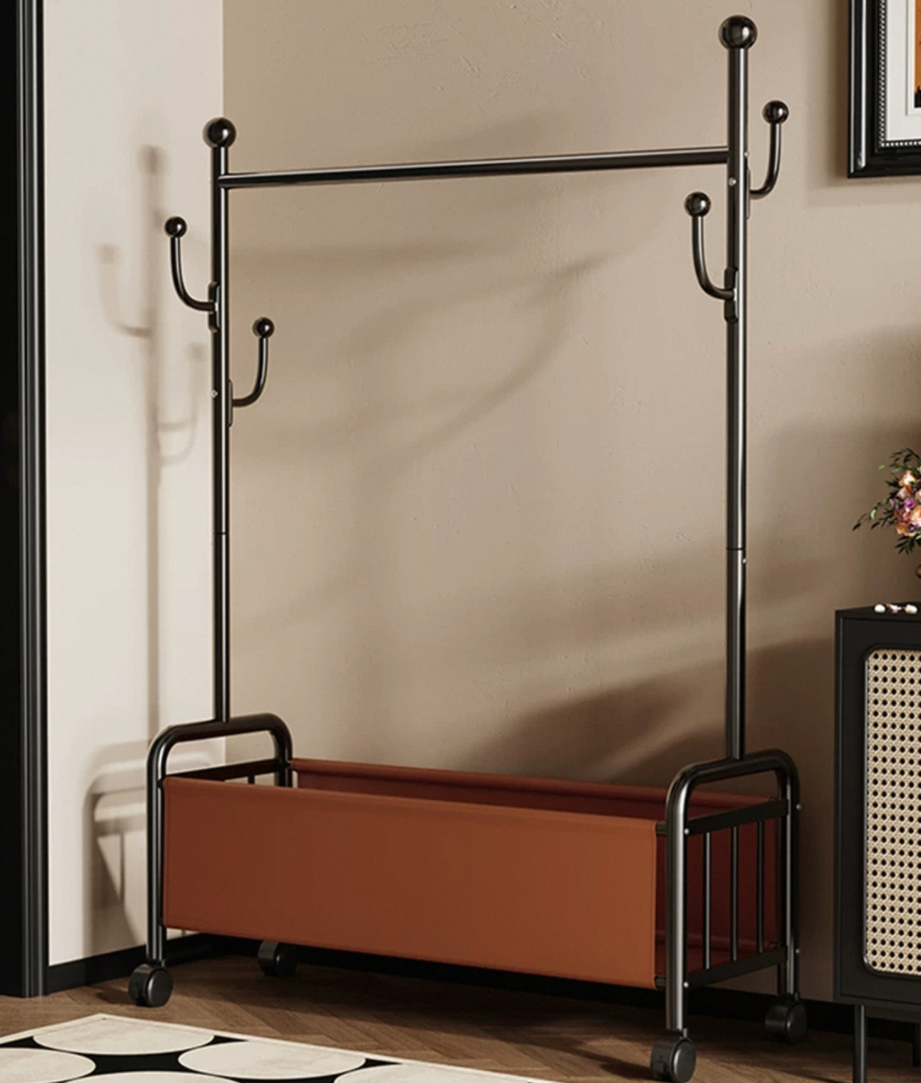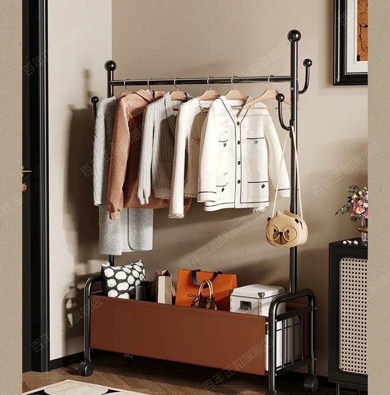 이동식 다기능 옷걸이 건조대, 실내 침실용 이동식 수납 침대 옆 옷걸이