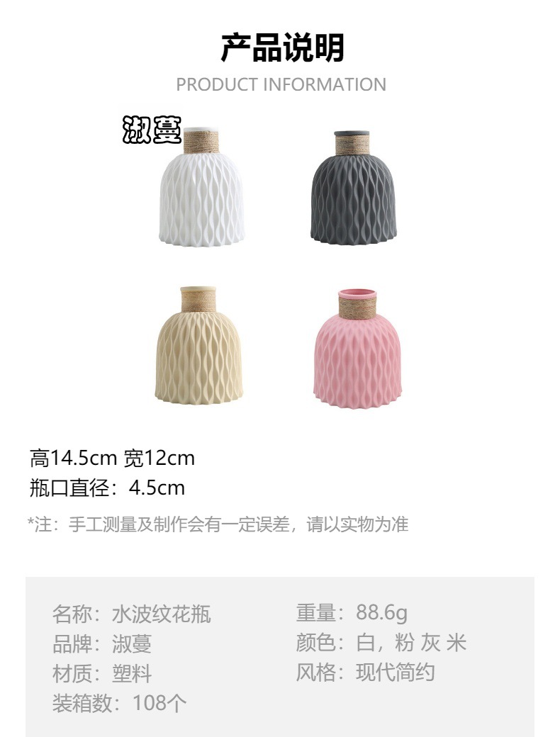 북유럽 Ins 풍수 골판지 플라스틱 꽃병 거실 식탁 홈 장식 장식 꽃 배열 컨테이너 국경 간 대외 무역스토어 가기