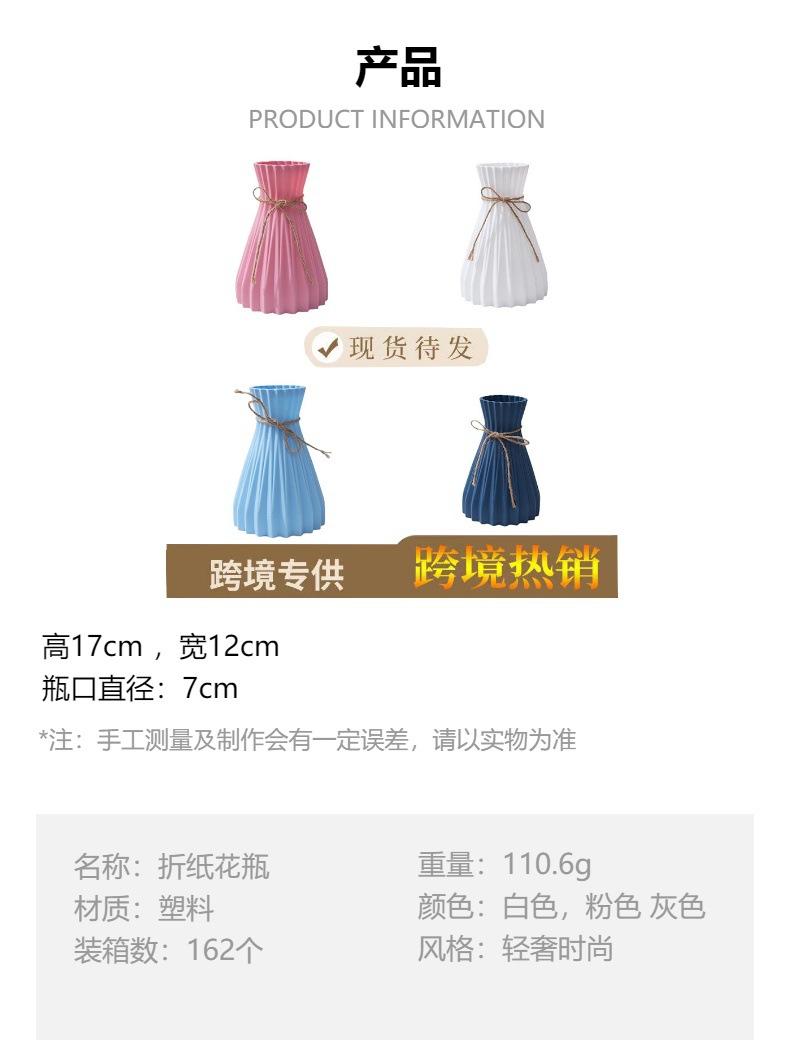 북유럽 Ins 풍수 골판지 플라스틱 꽃병 거실 식탁 홈 장식 장식 꽃 배열 컨테이너 국경 간 대외 무역