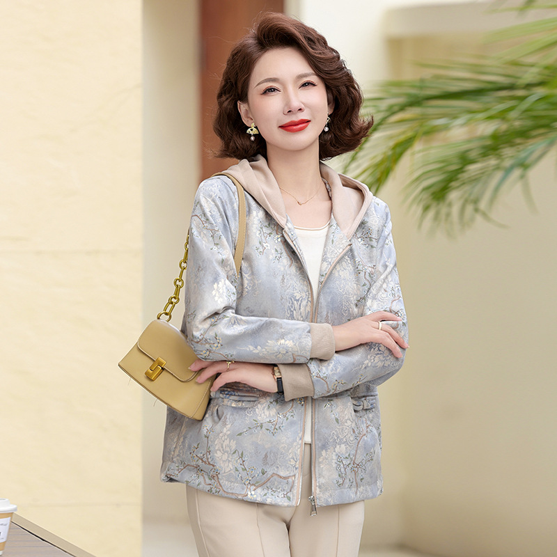중년 및 노인을위한 여성의 봄과 가을 후드 자켓 어머니를위한 새로운 스타일의 봄 코트 캐주얼 우아한 탑스토어 가기
