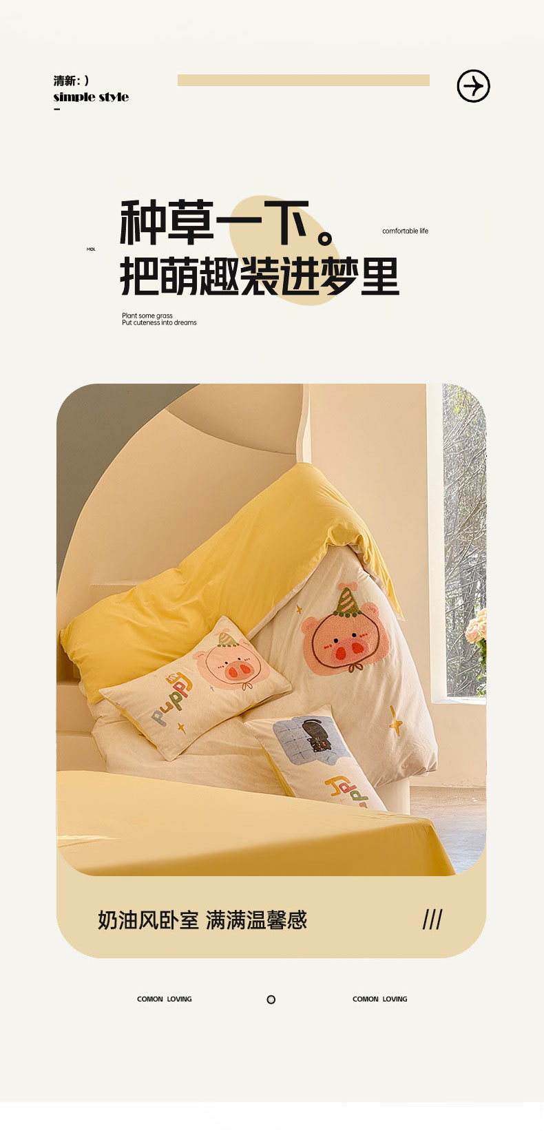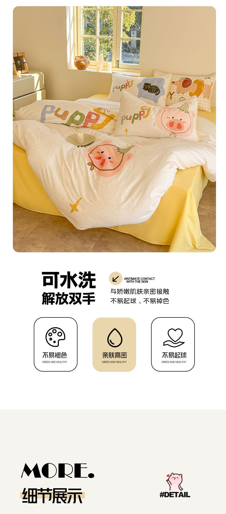 • 1.2m 침대시트 3종세트 [이불커버 150*200cm 침대시트 180*230cm 베개커버 48*74cm*1]