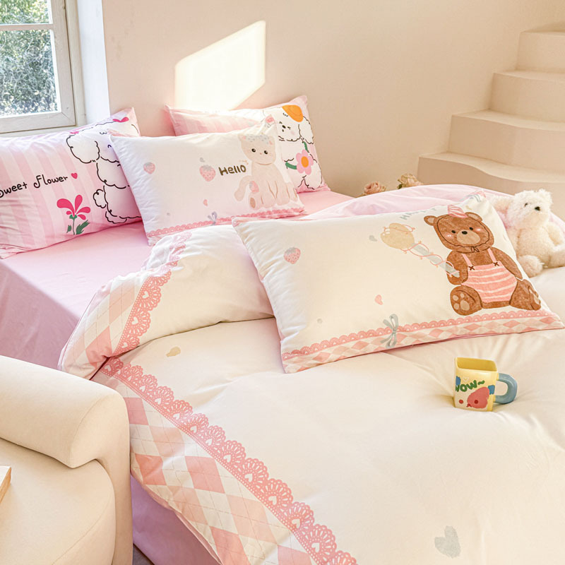 크림 스타일 코튼 60 수건 자수 4 종 세트 100 면 만화 어린이 퀼트 커버 시트 3 피스 세트 소녀의 마음