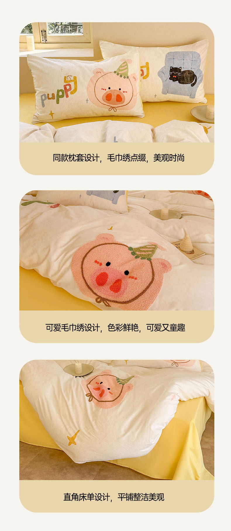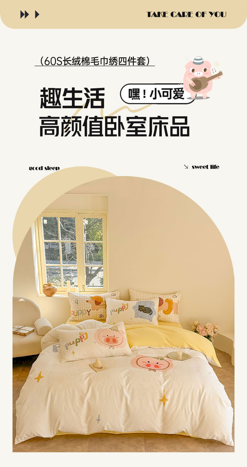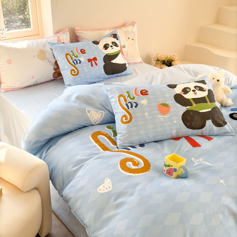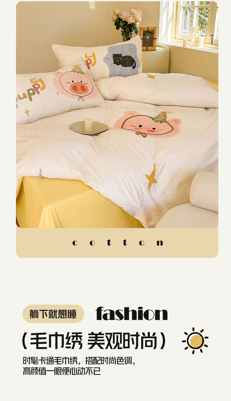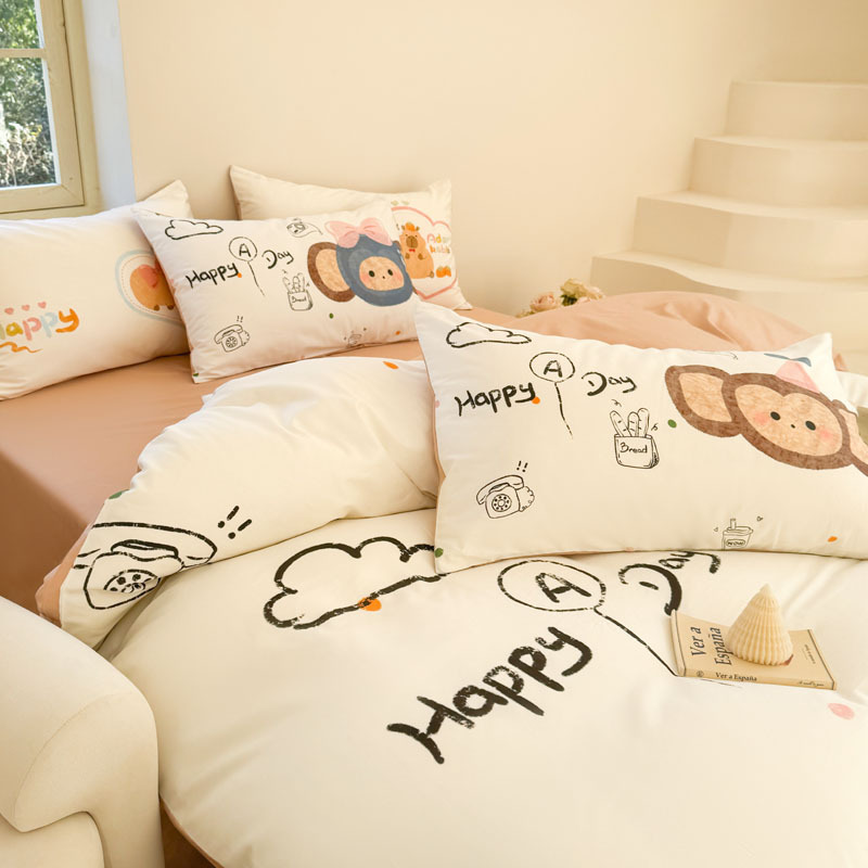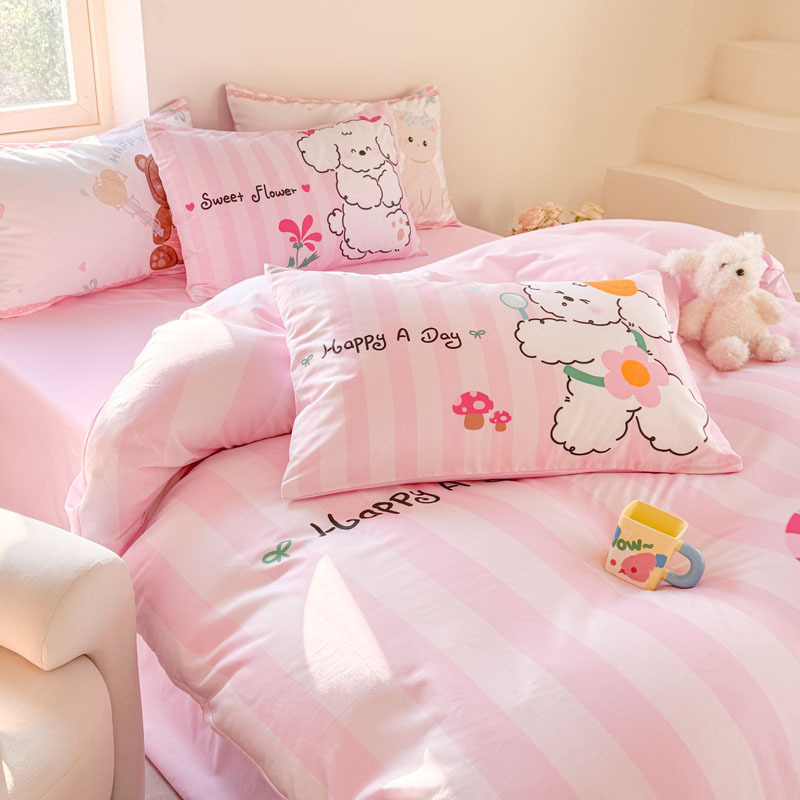 크림 스타일 코튼 60 수건 자수 4 종 세트 100 면 만화 어린이 퀼트 커버 시트 3 피스 세트 소녀의 마음스토어 가기