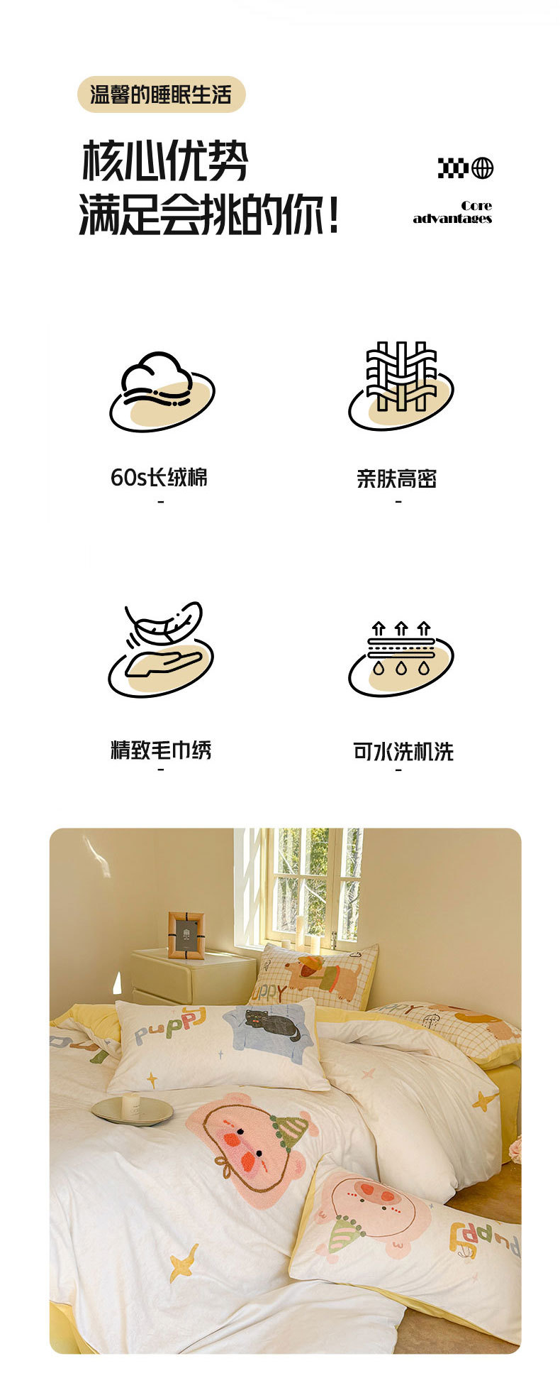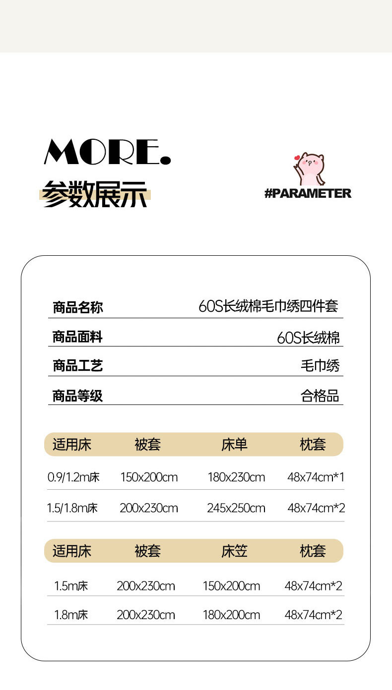 • 1.5m 침대시트 4종세트 [이불커버 200*230cm 침대시트 245*250cm 베개커버 48*74cm*2]