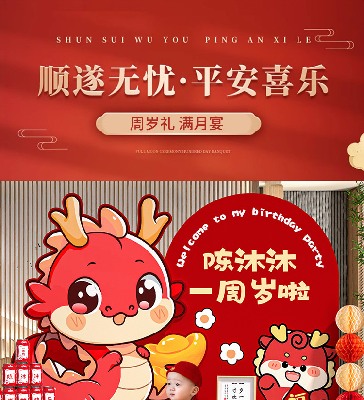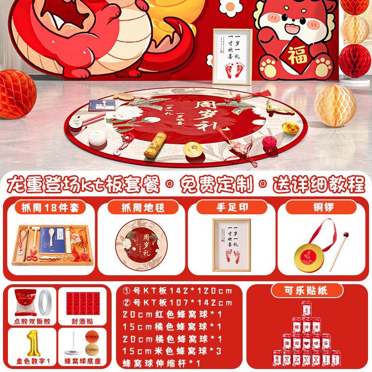 • 드래곤 재창립 kt 보드 패키지 + 표준 주간 18개 + 중국 스타일 1세 선물 카펫 + 1세 선물 손 및 발자국 + 황금 숫자 풍선 1개 + 콜라 스티커 16개