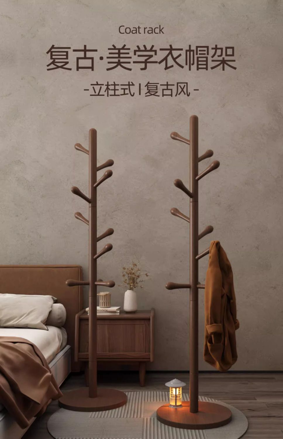 현대 간단한 가정용 단단한 나무 바닥 걸이 침실 간단한 코트 랙 간단한 수직 옷 옷걸이 가방 랙
