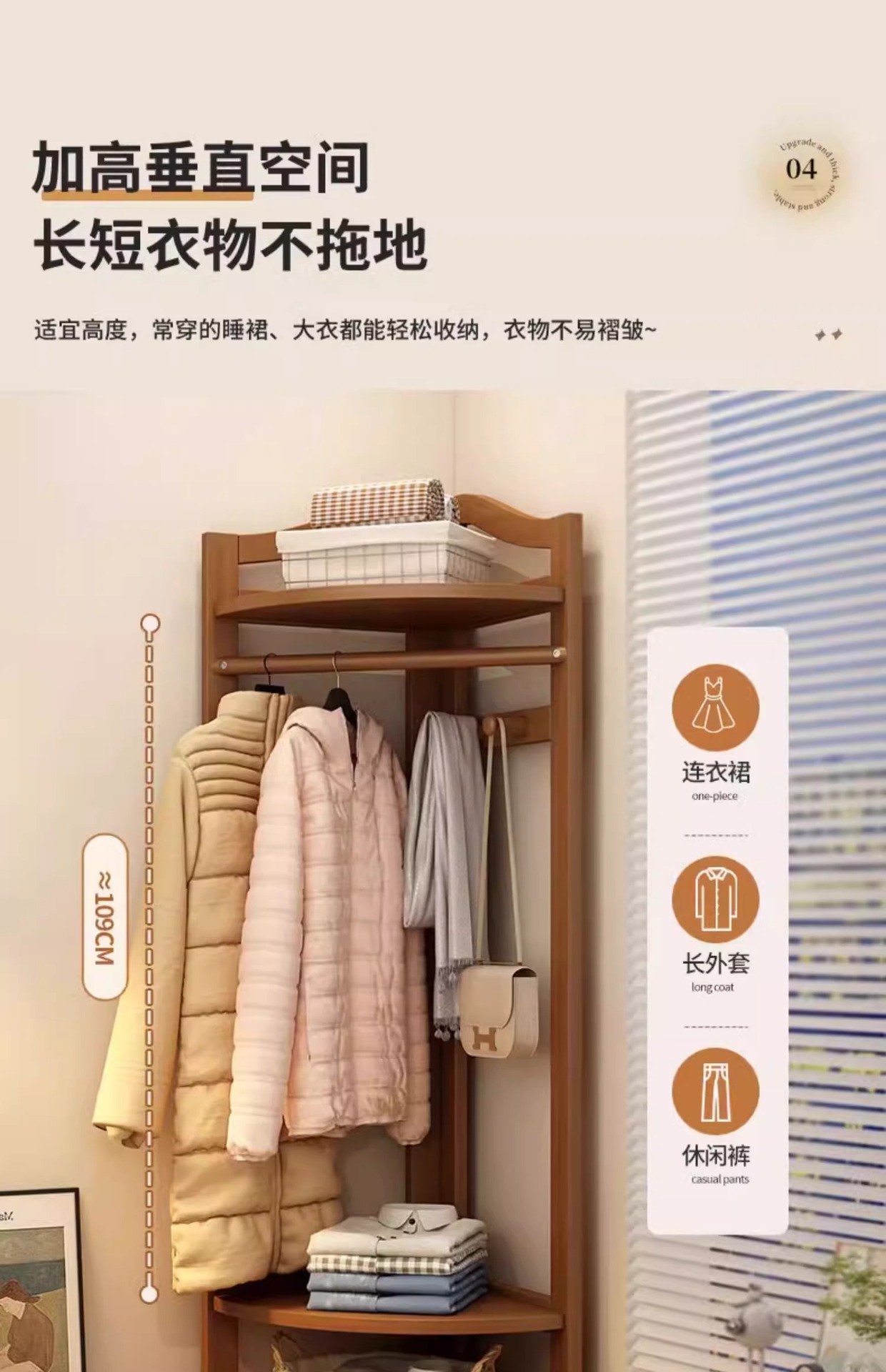 코너 코트 랙 바닥부터 바닥까지 가방 랙 침실 임시 옷 인공물 공간 없음