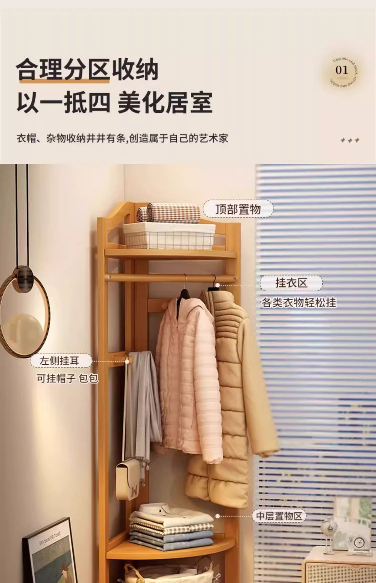 코너 코트 랙 바닥부터 바닥까지 가방 랙 침실 임시 옷 인공물 공간 없음스토어 가기