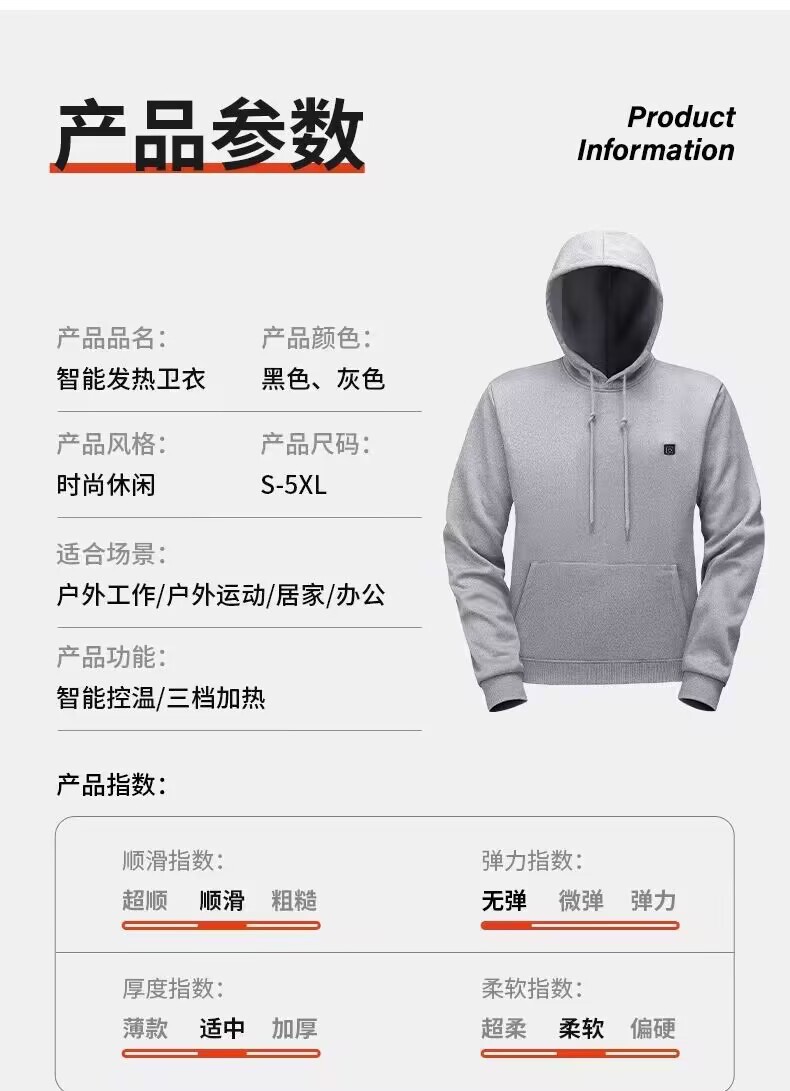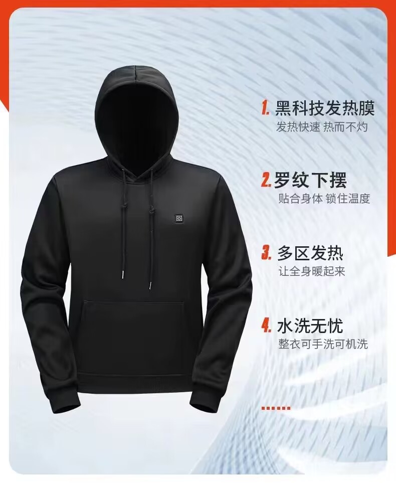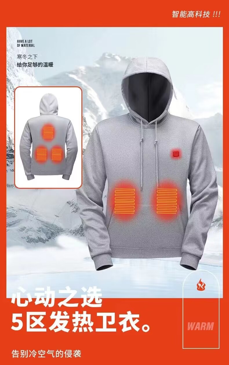 유럽 사이즈 5 지역 발열 후드티, 새로운 인기 모델, 스마트 후드티, 전기 발열 데일리 발열복 상의, 남녀 공용스토어 가기