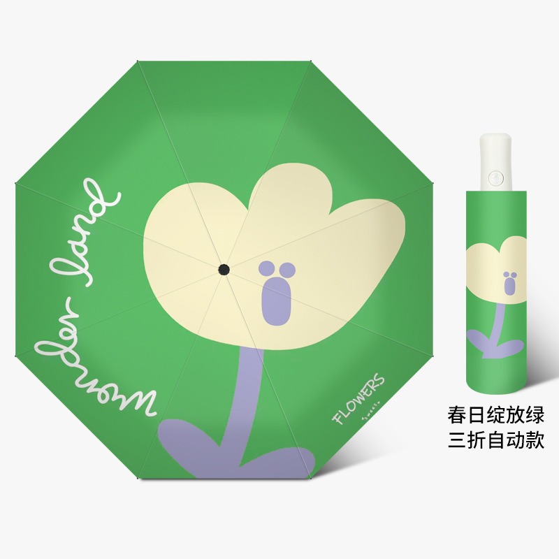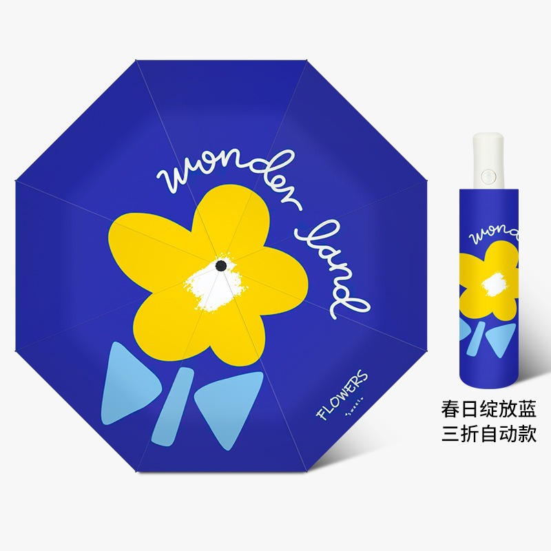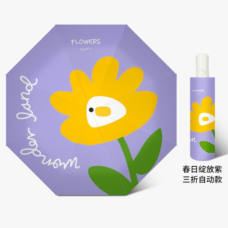 완전 자동 도매 우산 UV 보호 태양 우산 접이식 우산 작은 신선한 검은 고무 비와 빛나는 이중 목적 우산