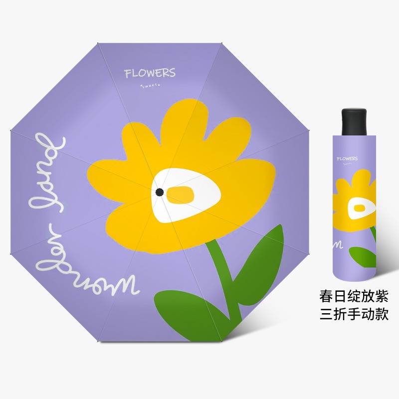 완전 자동 도매 우산 UV 보호 태양 우산 접이식 우산 작은 신선한 검은 고무 비와 빛나는 이중 목적 우산스토어 가기